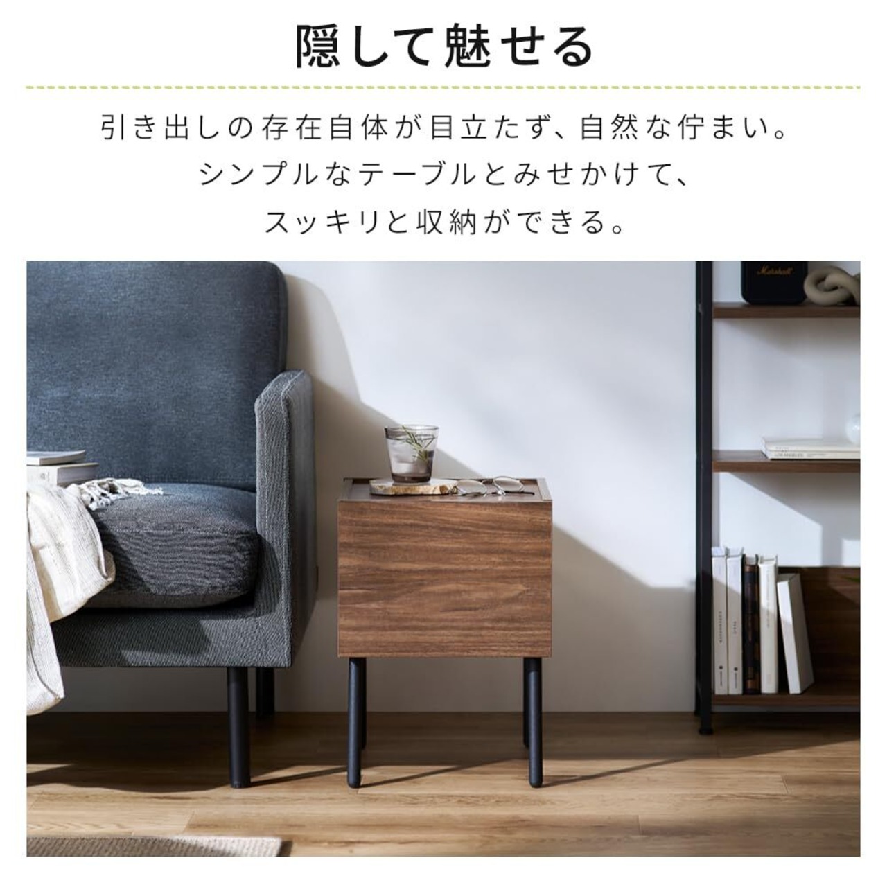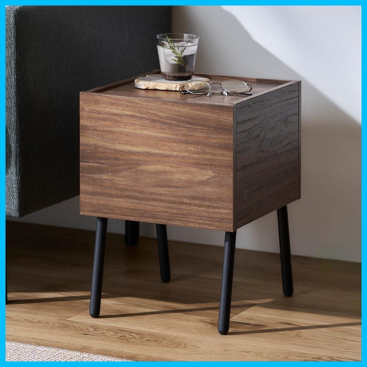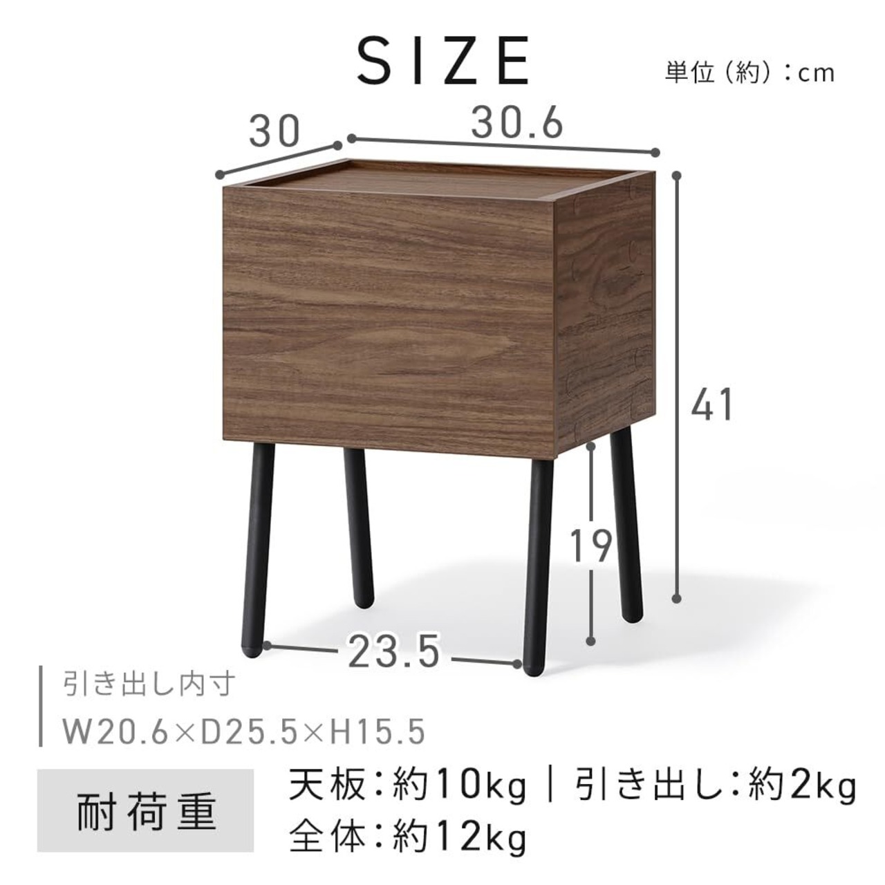アイリスオーヤマ サイドテーブル テーブル 収納付き 部屋を広く使える ソファ横 ベッド横 小物収納 単身 一人暮らし おしゃれ IWST-300R ウォールナット/ブラック 【HIROBIROシリーズ】
