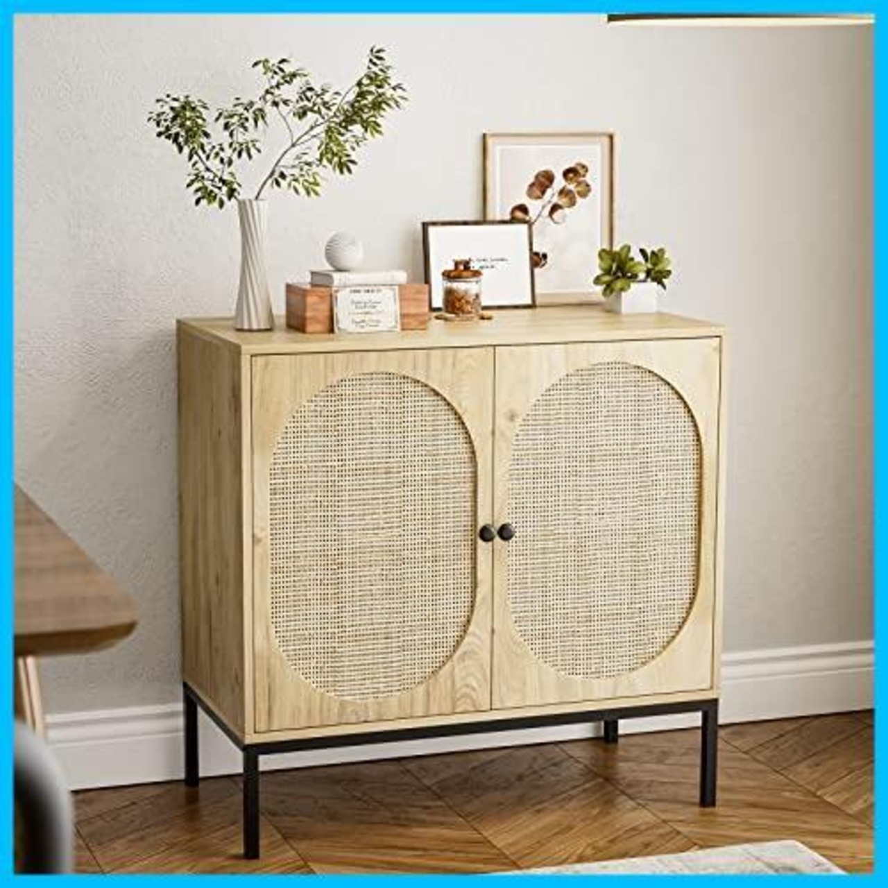 IKIFLY キャビネット 木製 サイドボード ラタンンキャビネット 収納 2扉 チェスト リビングボード ラタン収納棚 アクセント キッチン 収納 コンソール テーブル 調節可能な棚付き おしゃれ いっぱい 収納リビングルーム ダイニングルーム 寝室用 (ナチュラル, 幅80CM)