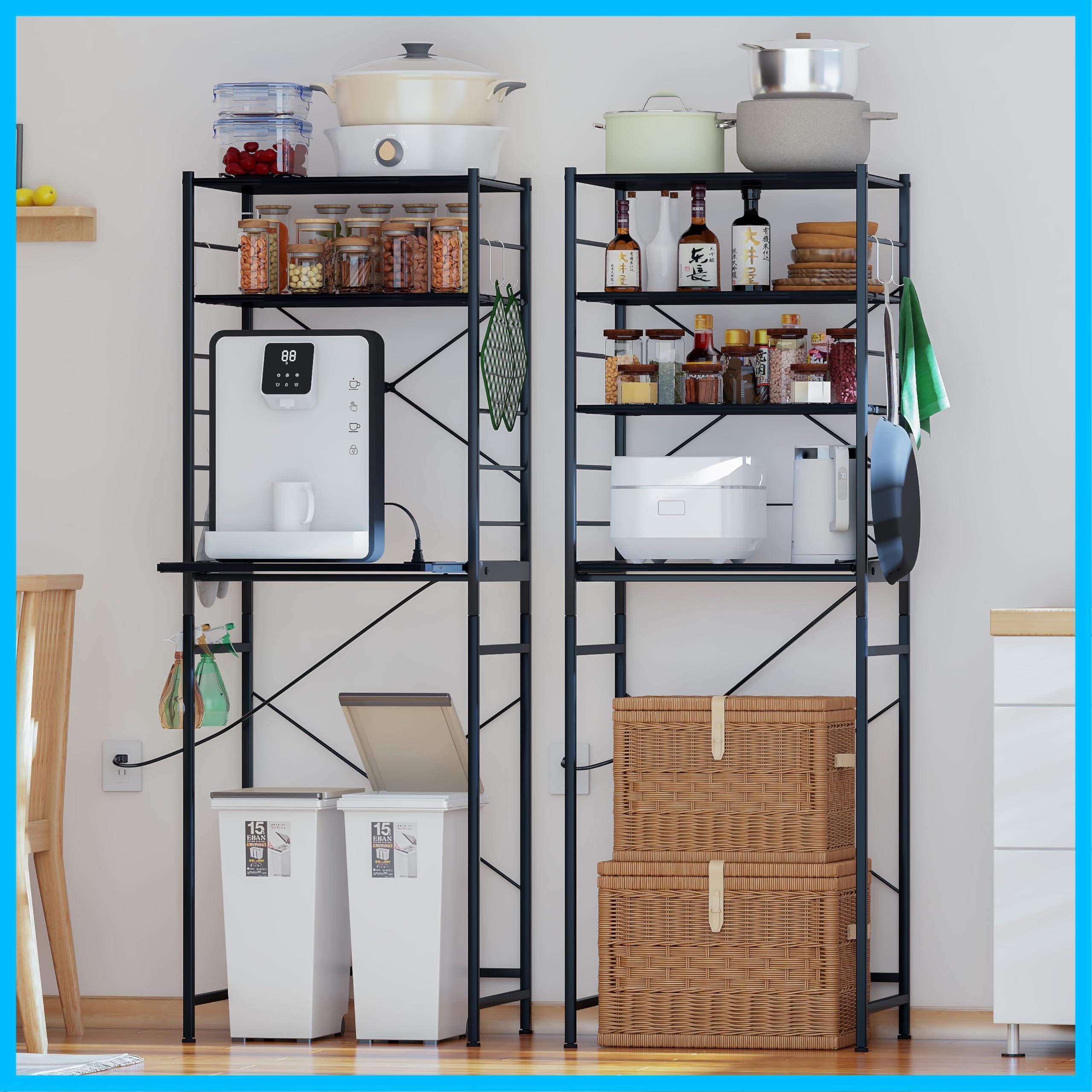 【特価商品】LunarLight ゴミ箱上ラック幅60×奥行45×高さ171cm キッチンベイカーラック キッチンラック レンジラック オープンラック 収納 冷蔵庫上ラック 洗濯機ラック 可動式棚板付き レールでスライド棚板付き 2口コンセント付き 耐荷重120kg 棚板高さ複数段階調節 レンジ炊飯器など対応 Sフック付き 安定安心強度構造多機能ラック(ブラック幅60cm)
