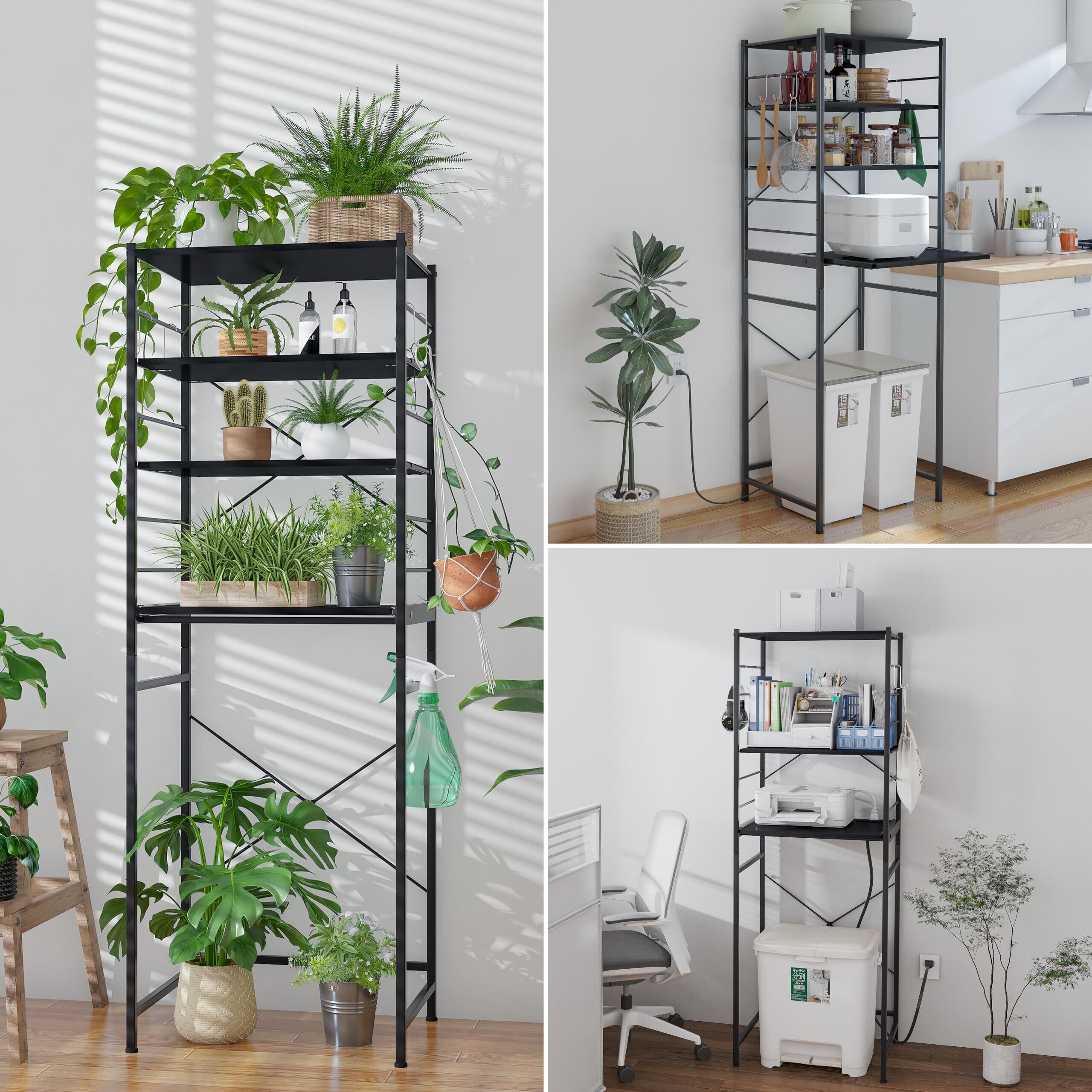 LunarLight ゴミ箱上ラック幅60×奥行45×高さ171cm キッチンベイカーラック キッチンラック レンジラック オープンラック 収納 冷蔵庫上ラック 洗濯機ラック 可動式棚板付き レールでスライド棚板付き 2口コンセント付き 耐荷重120kg 棚板高さ複数段階調節 レンジ炊飯器など対応 Sフック付き 安定安心強度構造多機能ラック(ブラック幅60cm)