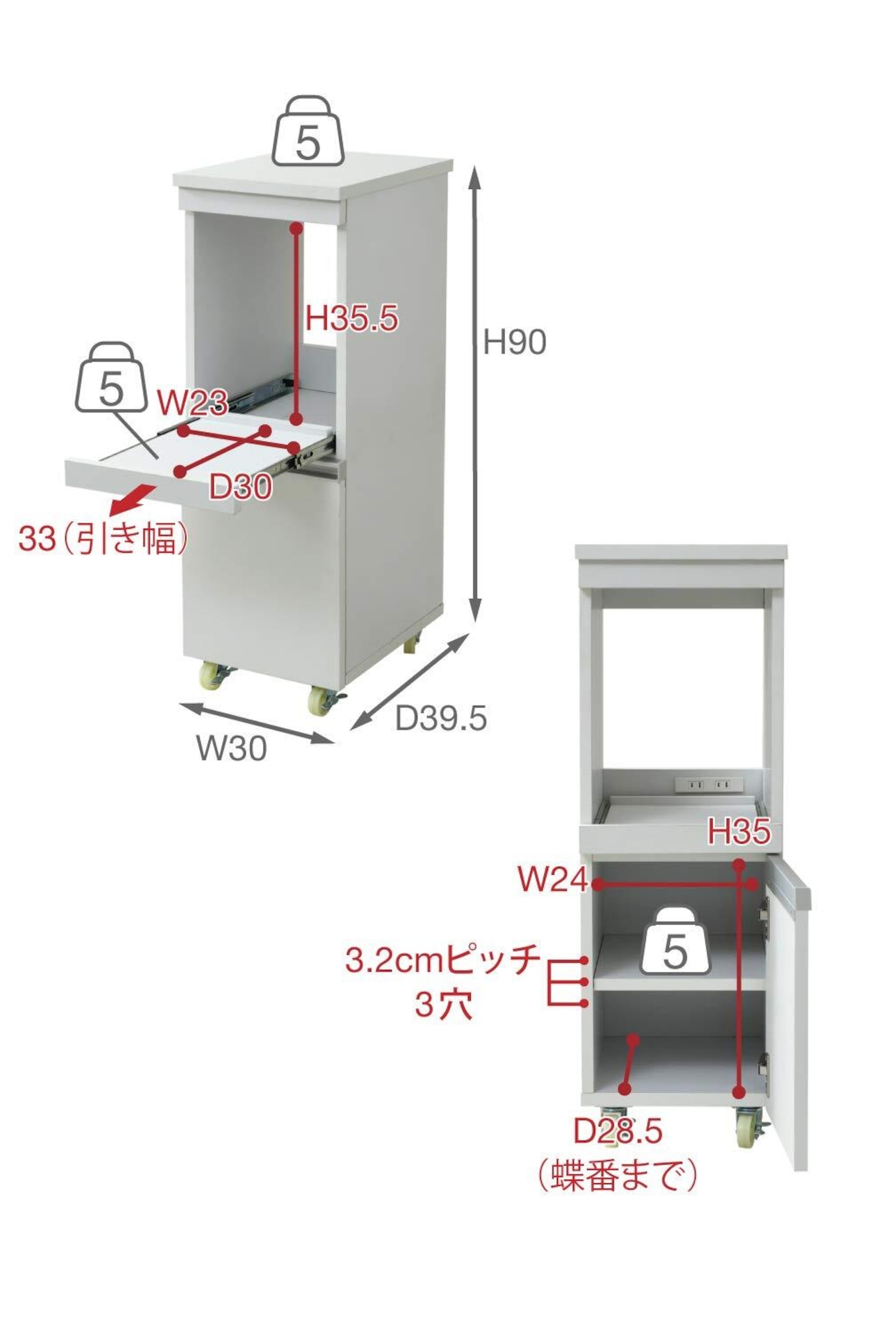 [天板]約5kg以下 [スライド棚]約5kg以下 [可動棚]約5kg以下 ・背面化粧有り ・可動棚:1枚 ・合計1500Wの2口コンセント付き(コード長さ196cm) ・キャスター4個(うち2個ストッパー付き)