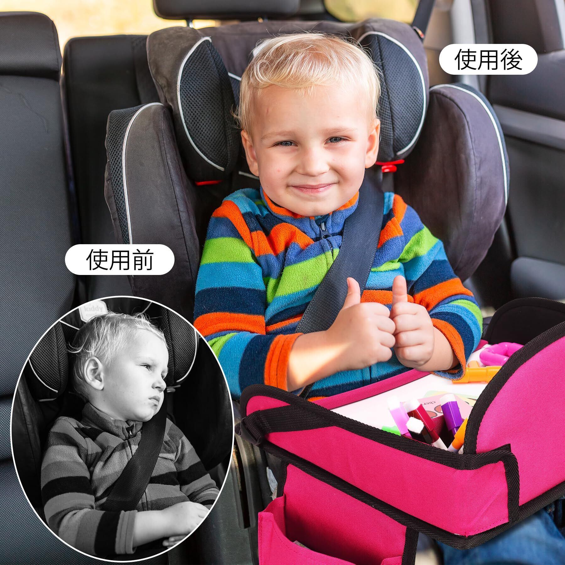Dreamania チャイルドシート テーブル 絵筆付属 ベビーテーブル 固定バンド付き お絵かきテーブル 子供用 車 座席サイドテーブル 車載 食事 お遊び台 (新型ピンク)