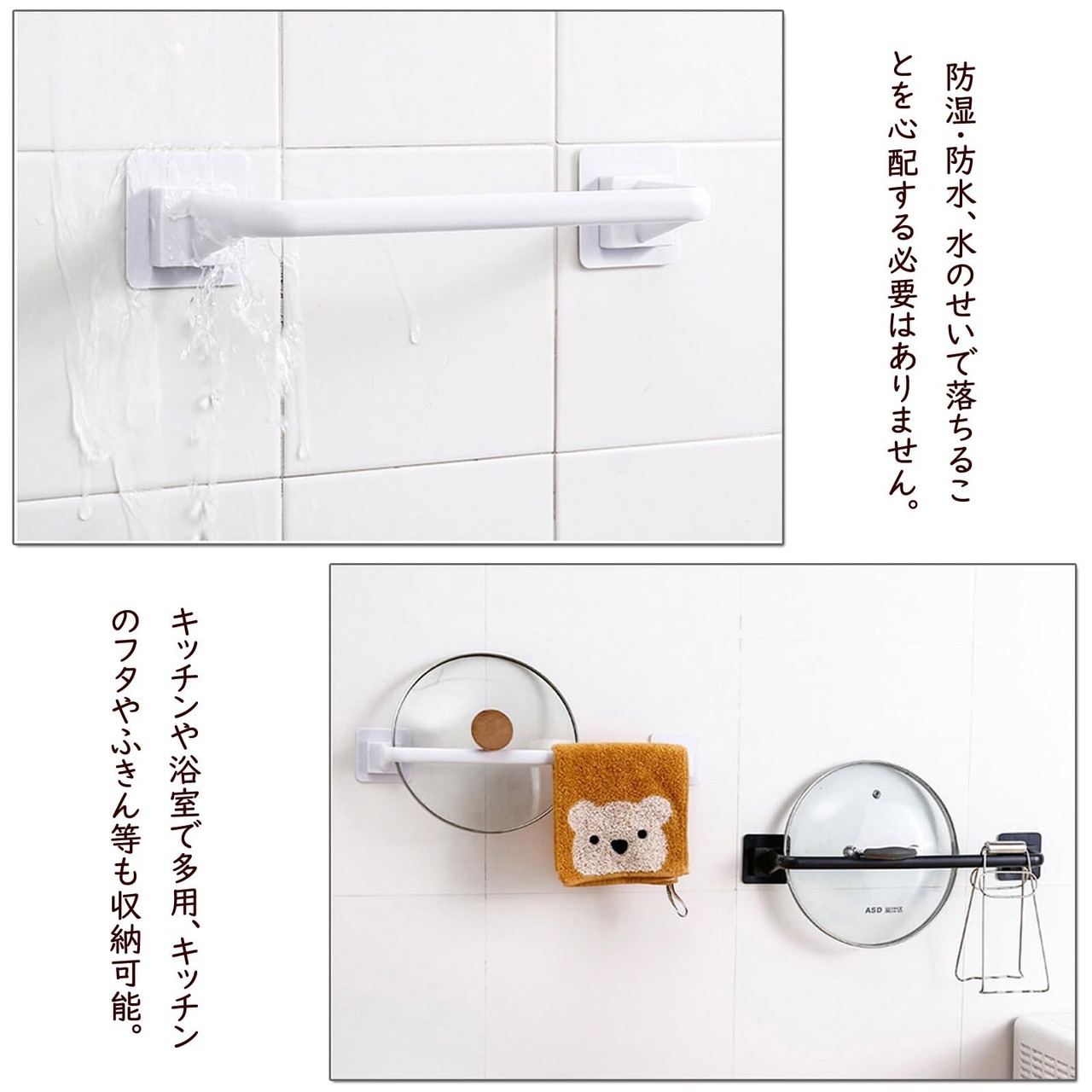 【【適用場所】このバスタオル掛けはキッチン、バスルーム、洗面台、ガレージ、ベッドルーム、バスルームなどの滑らかな壁に非常に適しています。(注意:粘着する前に、貼り付け面が完全に乾燥していることを確認してください。)