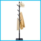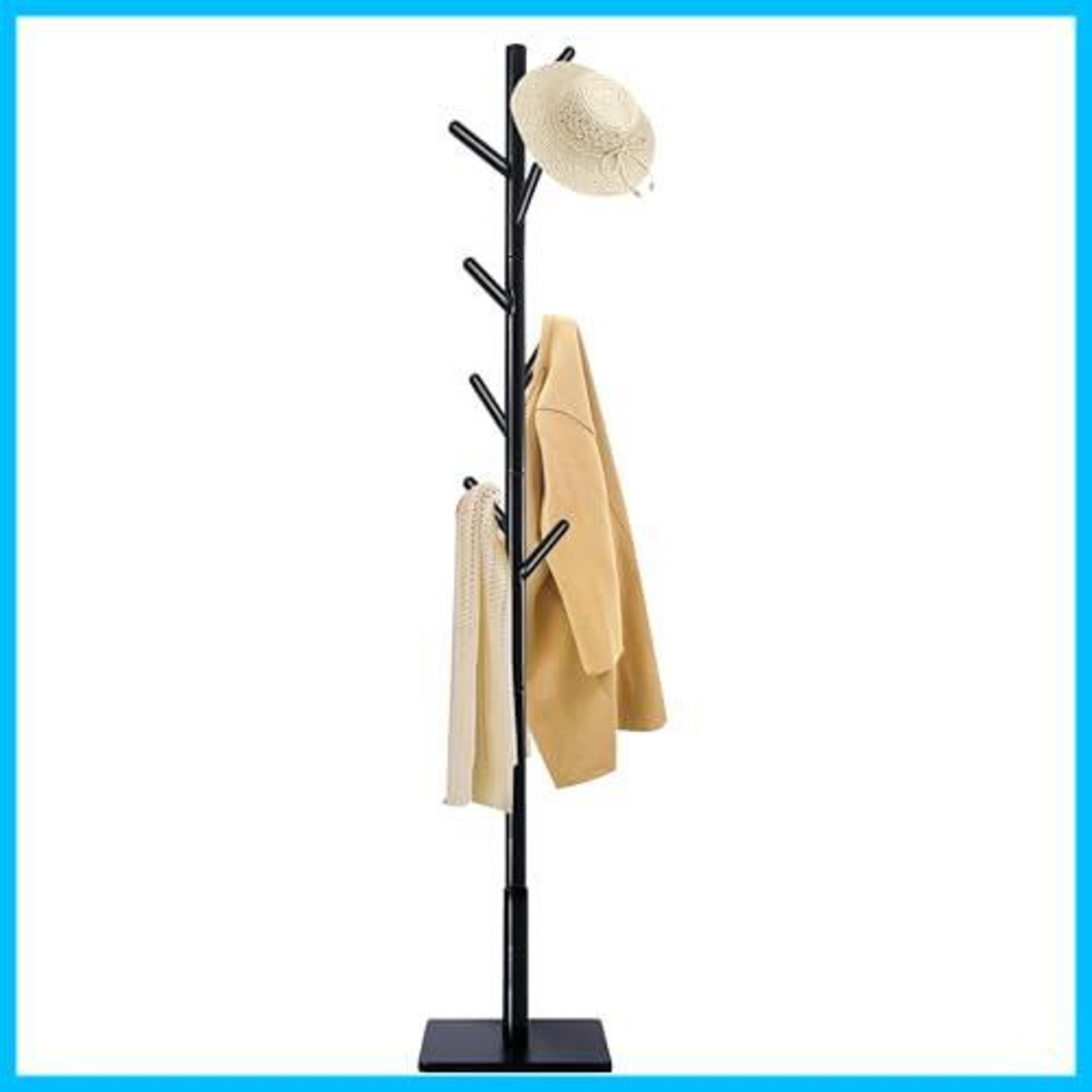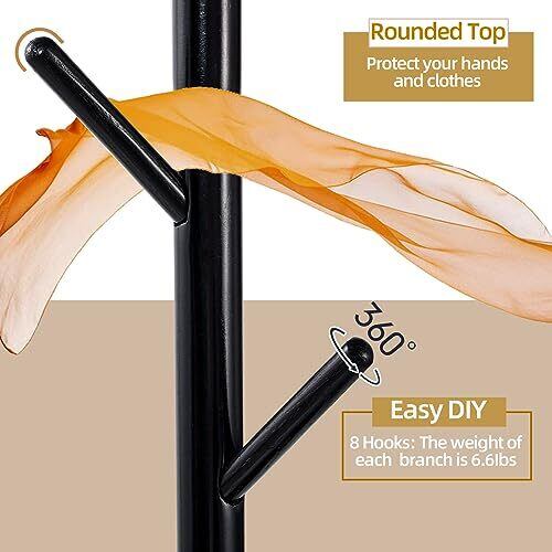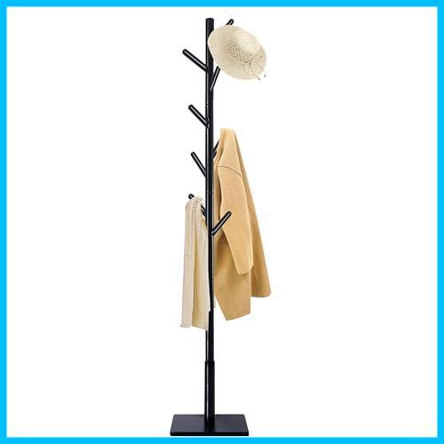 【特価セール】Yawinhe ポールハンガー 8つのフックがついたハンガーラック 3段高さ調節可能 高耐荷重 頑丈な四角の台座,四角滑り止め付きです ,です木製 コートハンガー 高さ180CM,省スペース 収納力があります 適用されます リビング 寝室 帽子 衣服,(ブラック)