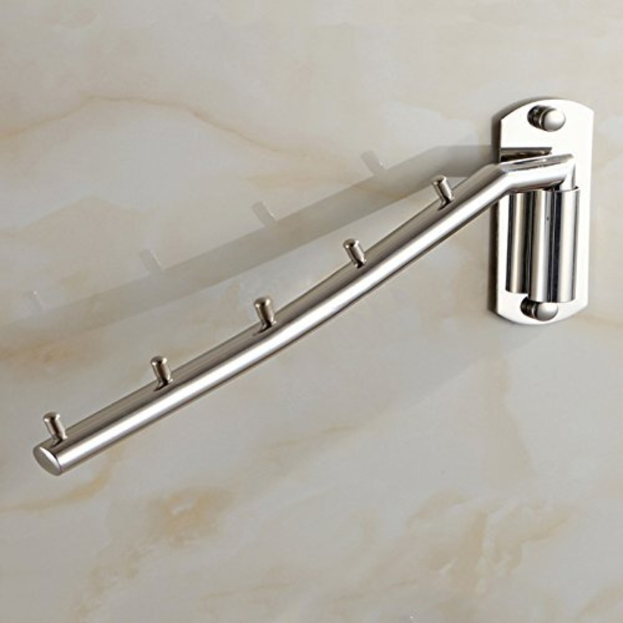 IKENOKOIウォールハンガー 壁掛けフック 回転可 服/帽子/鞄収納 ステンレス 玄関/浴室/キッチン/ベッドルーム(5連 B)