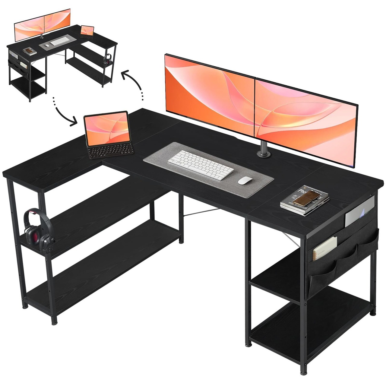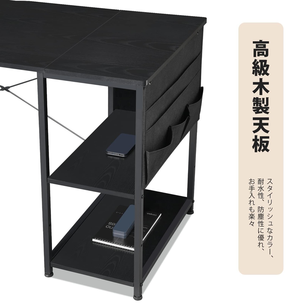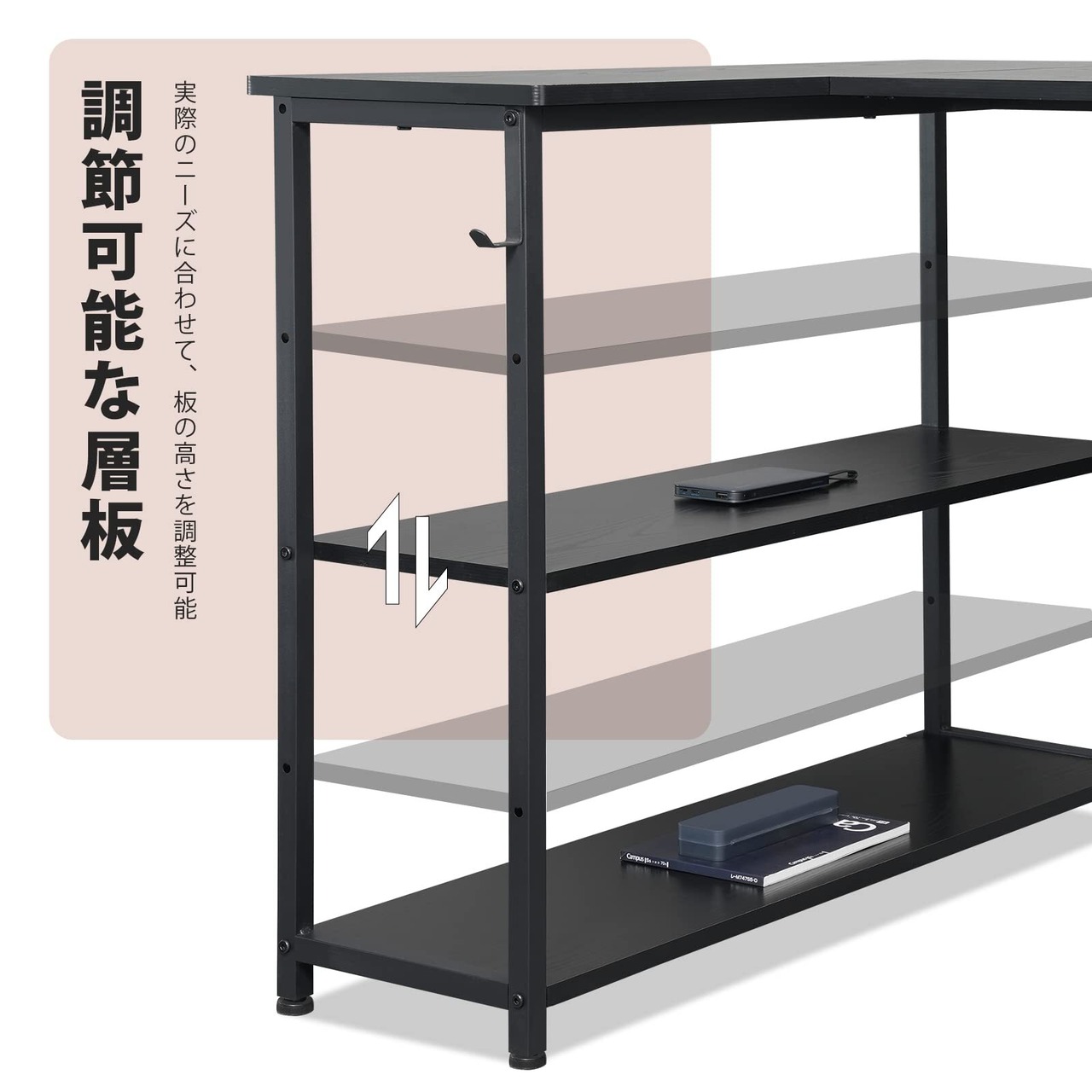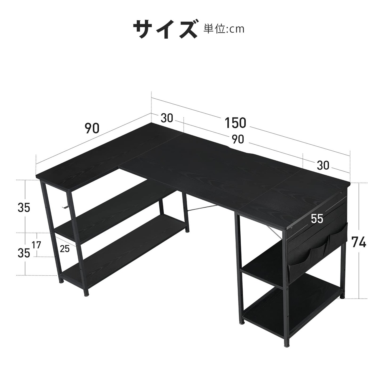 【特価商品】YeTom l字デスク ゲーミングデスク デスク 幅150cm pcデスク コーナーデスク 棚板高さ調節可能 収納袋付き L字型 PC 勉強机 作業 在宅勤務 リモートワーク ゲーム 書斎 収納ラック付き 黑い