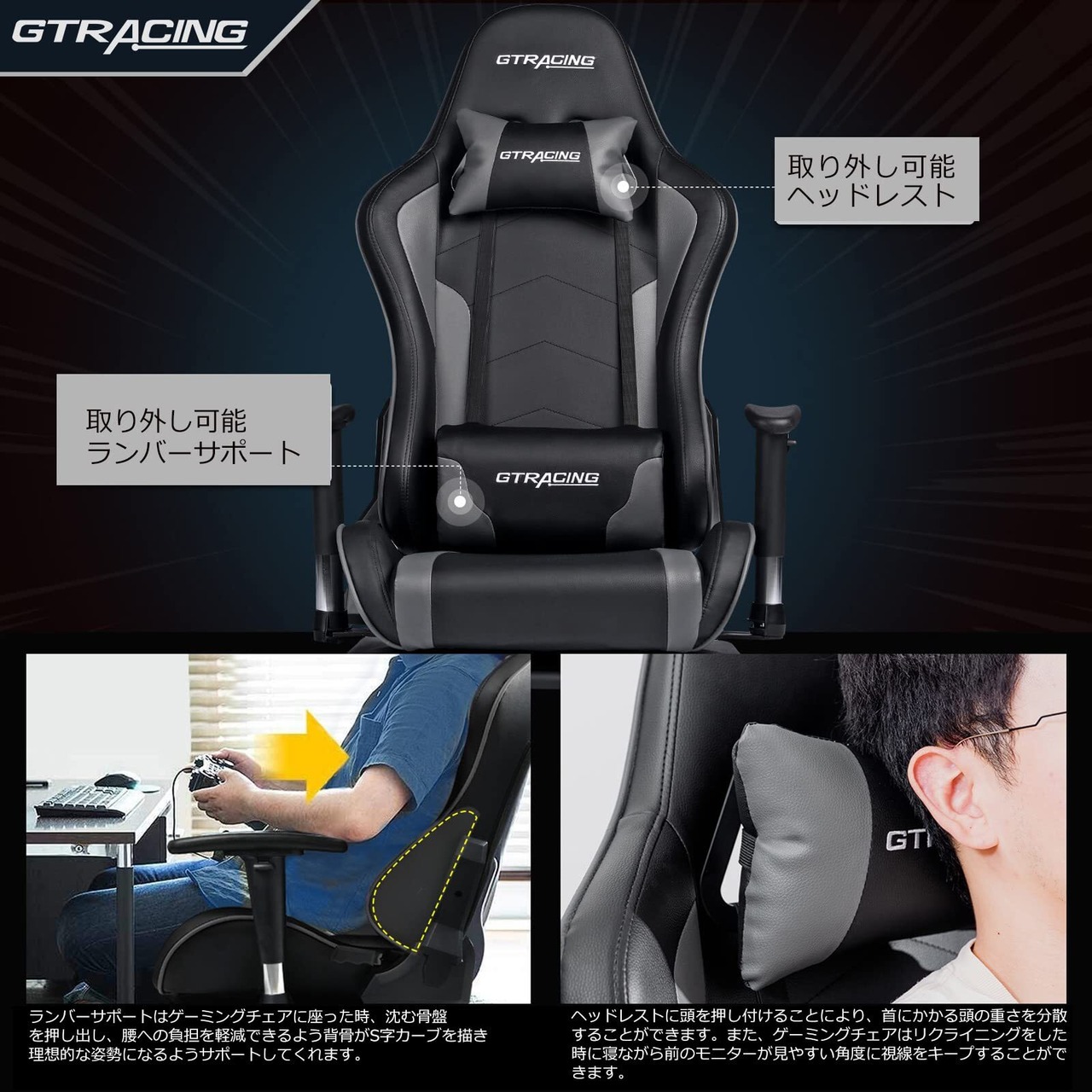 GTRacing ゲーミングチェア 座椅子 ゲーム ゲーマーズ ハンコンスタンド座椅子の自作、XBOX PS5 PS4 switchなどレースゲームの臨場感を楽しめ ゲーマーの椅子 180°リクライニング 360° 回転 上下肘掛 腰痛対策 (Gray)
