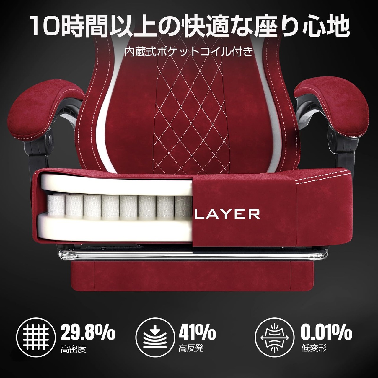 GTRacing ゲーミングチェア ファブリック 通気性 オフィスチェア デスクチェア PCチェア 椅子 腰痛対策 内蔵式ポケットコイル 【統合ランバーサポート】 キルティング技術 オットマン付き 厚手の背もたれ ソファー座り心地 リクライニング ゲーム用 テレワーク 疲れない JP-GT836-RED