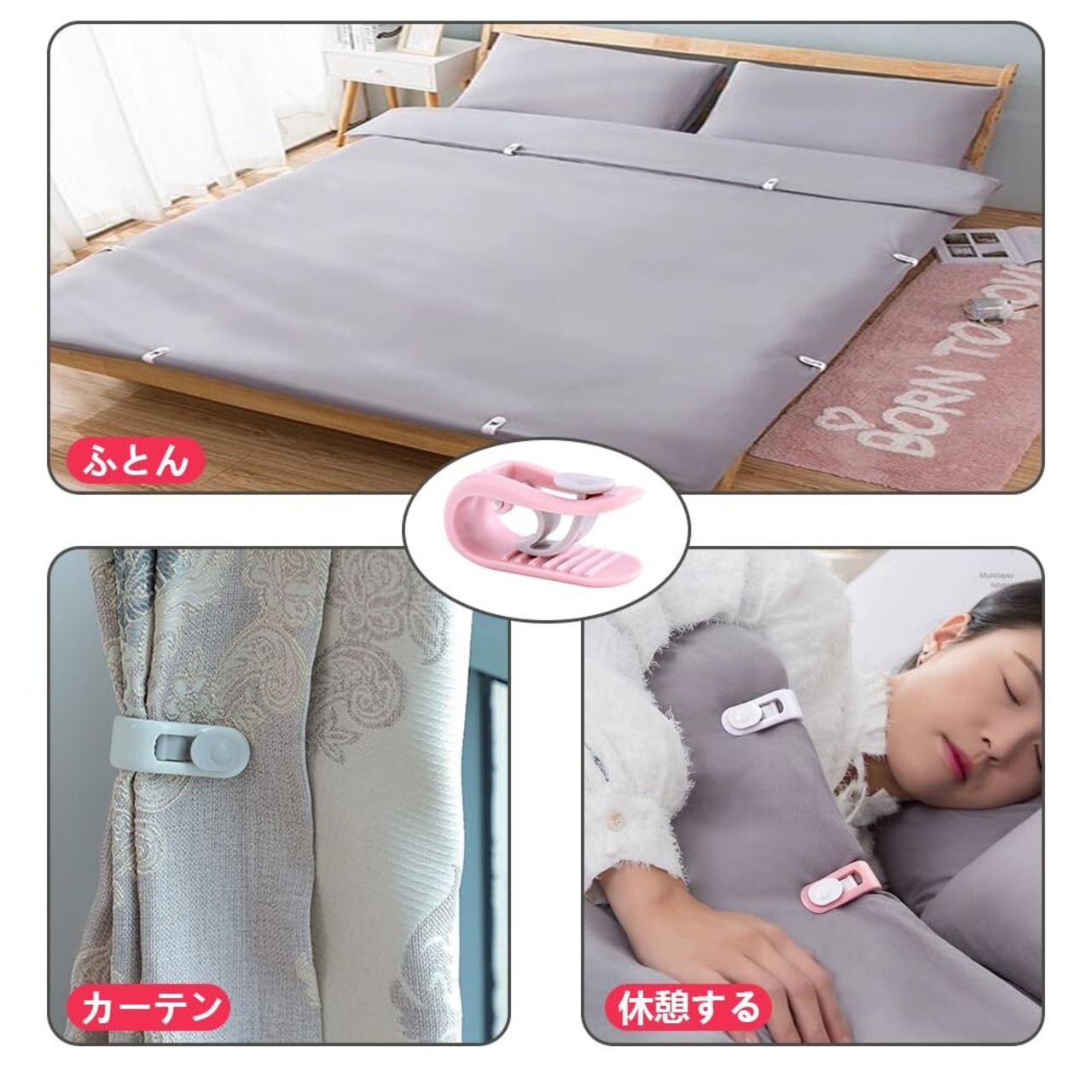 【布団 ズレ防止】:布団 ずれ防止。この掛け布団クリップがあれば、掛け布団の置き忘れやズレを心配する必要がなくなります。 掛け布団に穴が開く心配がなく、U字型のデザインに7本の滑り止めストライプで掛け布団をしっかり固定でき、落ちにくいです。 安定した滑り止め、バックルの開閉が簡単、取り付けが簡単、跡を残さずに取り外すことができます。キルトをしっかりと固定すれば、一晩中暖かく快適な眠りを楽しめます