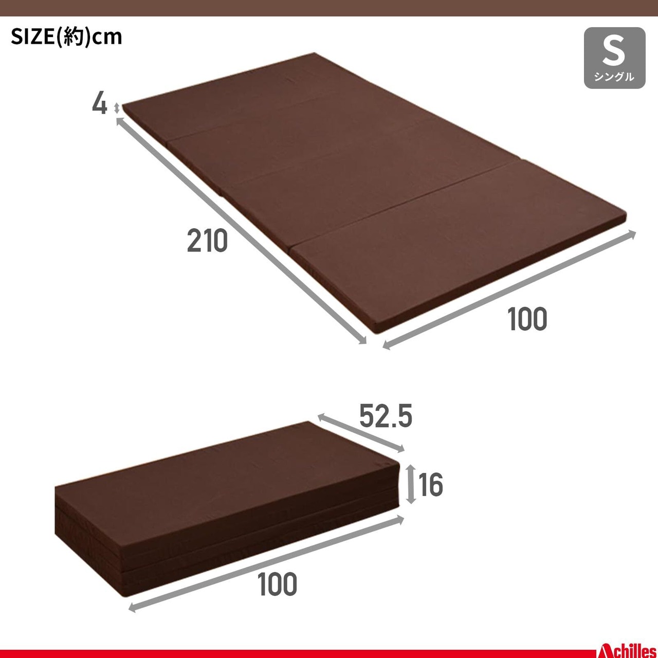 ●本体サイズ:シングル(幅100×長さ210×厚み4cm)●折りたたみ時サイズ:幅100×長さ52.5×厚み16cm●重量:2kg●材質:側地=ポリエステル100%、中材=ウレタンフォーム(かたさ190N)●原産国:日本(※側地は中国製)