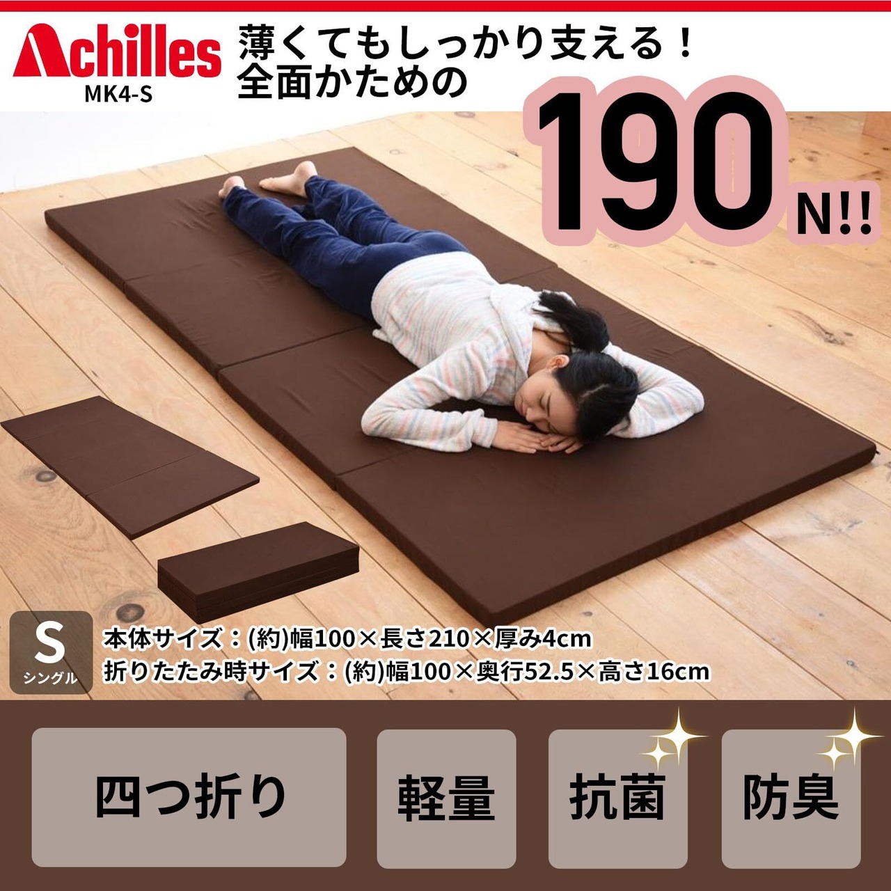 【特価セール】[アキレス] マットレス シングル 高硬度(190N) 硬め 折りたたみ 腰痛 抗菌 消臭 厚み4㎝ 車中泊 災害 ごろ寝 四つ折り コンパクト グレー MK4-S(GY)