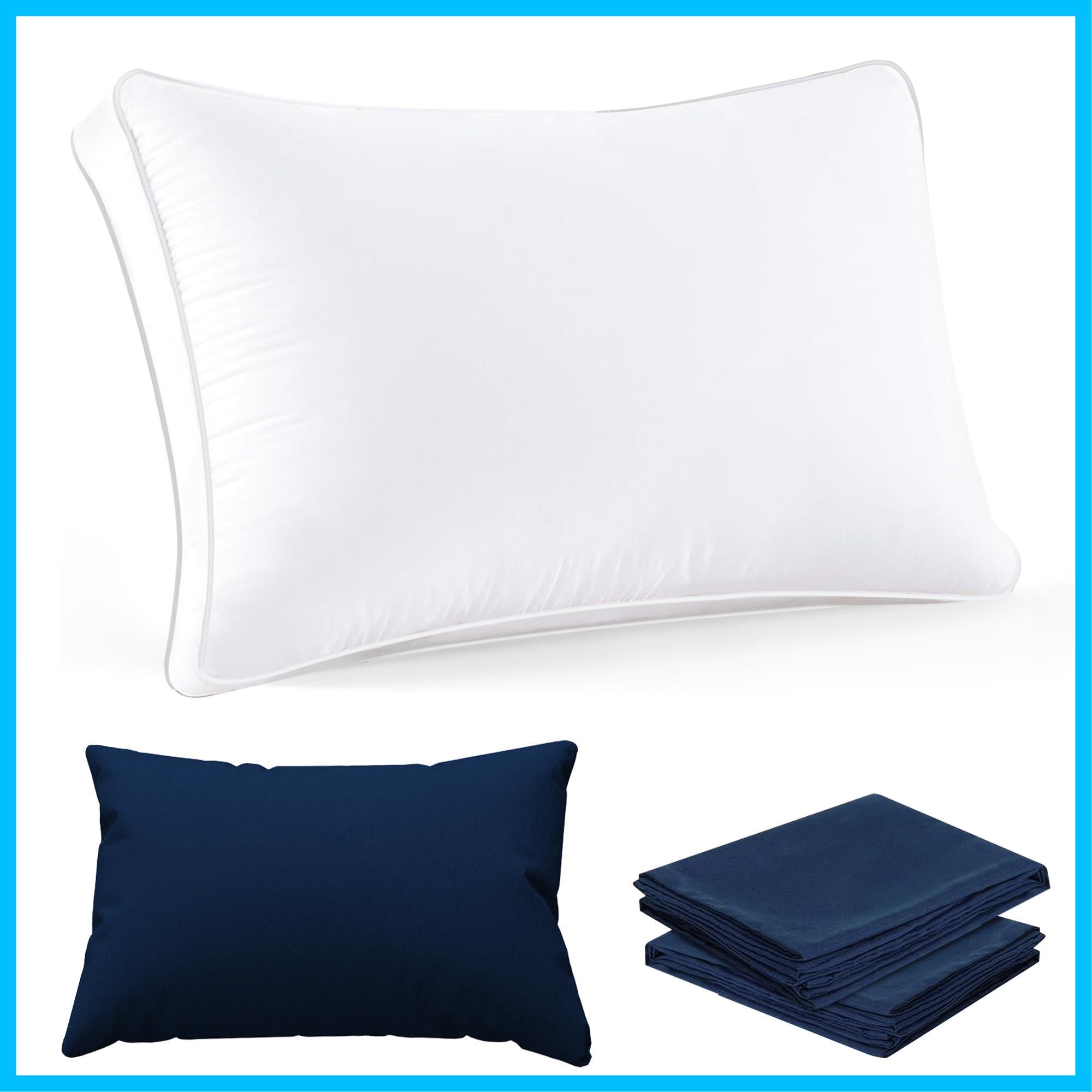 【数量限定】【 限定ブランド】ホテル仕様枕UOUOMI枕高反発枕寝心地枕水洗い可能3 D直立綿通気枕変形しにくい枕手触りなめらか軽量枕(白い枕)(63*43*20 CM)(ネイビー枕カバー2個付属)