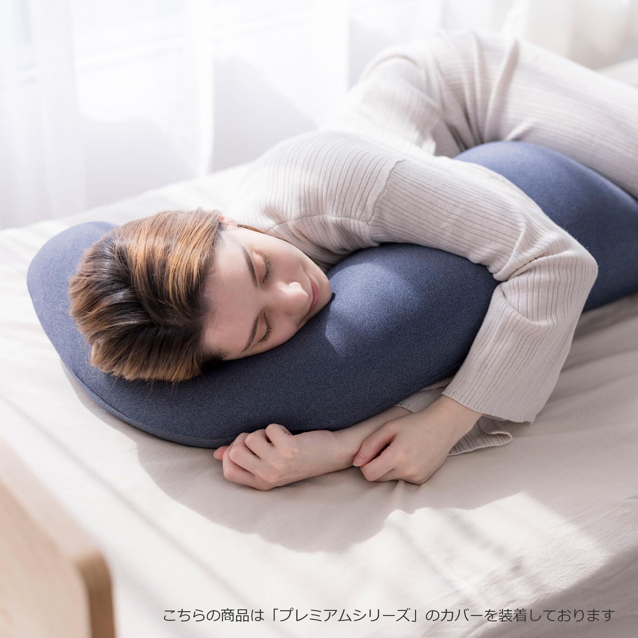 独特のフォルムがどんな寝姿勢にもフィットし、横向き寝やうつぶせ寝の手足のポジションを安定させます。