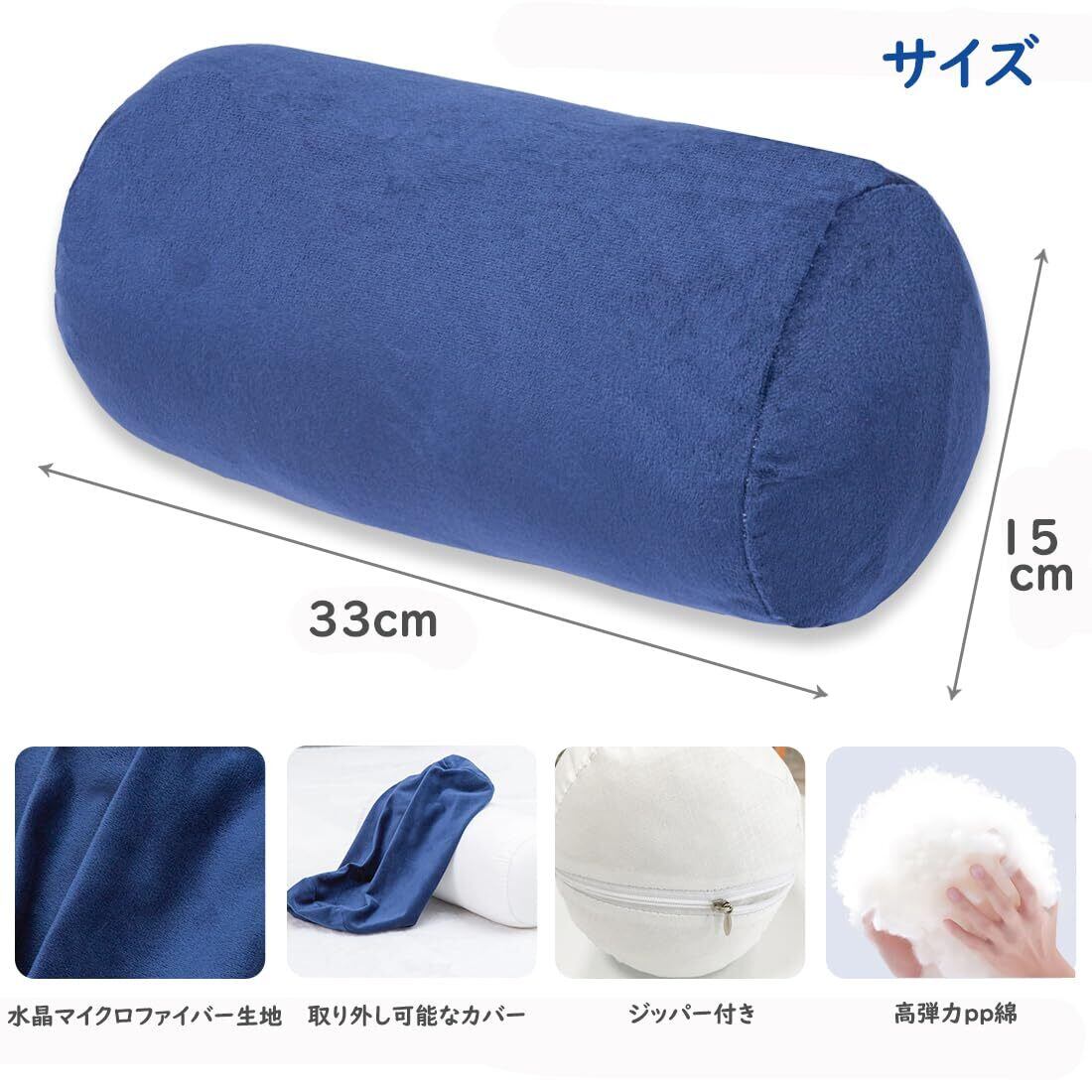 抱き枕 円筒型 クッション 円柱 足枕 腰あて クッション 腰枕 寝枕 昼寝枕 サポートクッション ミニクッション ふわふわ気持ちいい 滑らかな肌触り カバー洗える 33cmx15cm(ブルー)