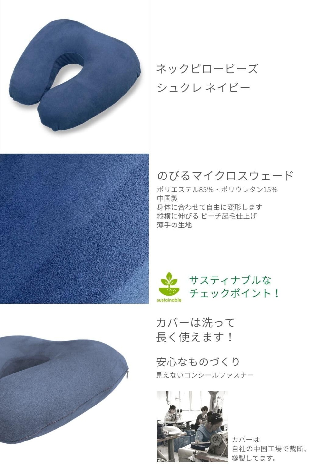 金鵄 ネックピロー 首枕 クッション (シュクレ ネイビー, フェイクスエード)