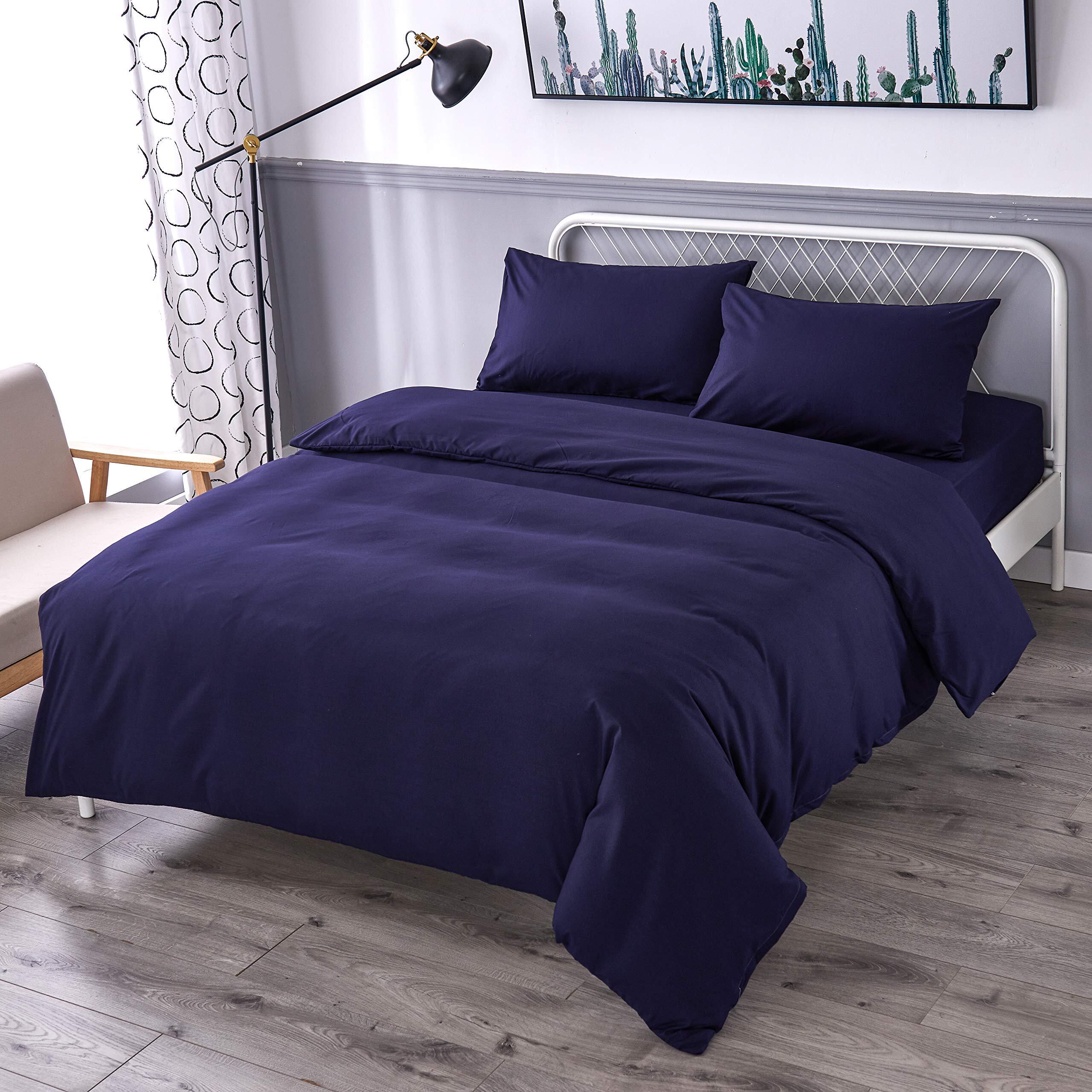 【特価セール】布団カバー クイーン 4点セット寝具カバーセット 綿混 無地 掛け布団カバー ボックスシーツ 枕カバー 洗い替え 速乾 防ダニ(ネイビー)