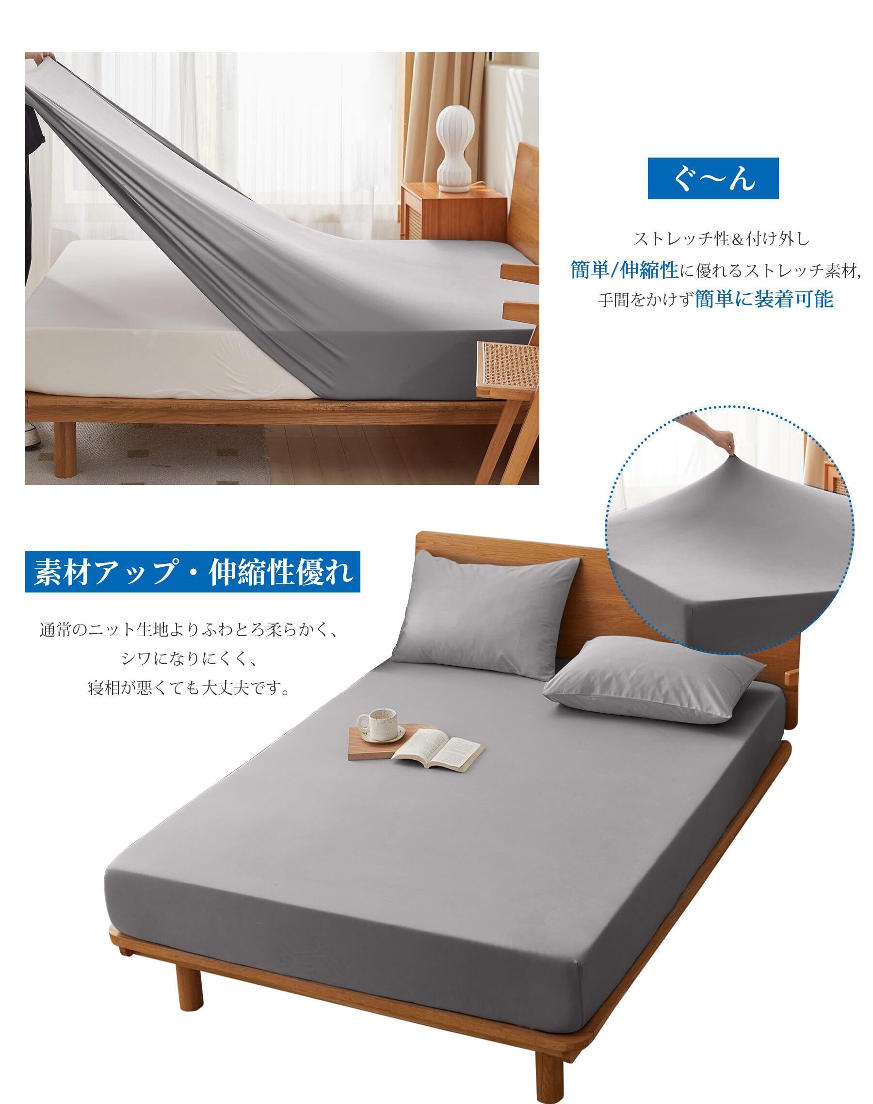 【伸縮性抜群、付け外し簡単】「3Dストレッチ」特性があり、タテにもヨコにも伸びるので、様々なサイズのマットに適用できます。 シワにならずにぴったりフィット、アイロンいらずキレイなベッドに変身するボックスシーツです。 手間なく簡単に装着できます。