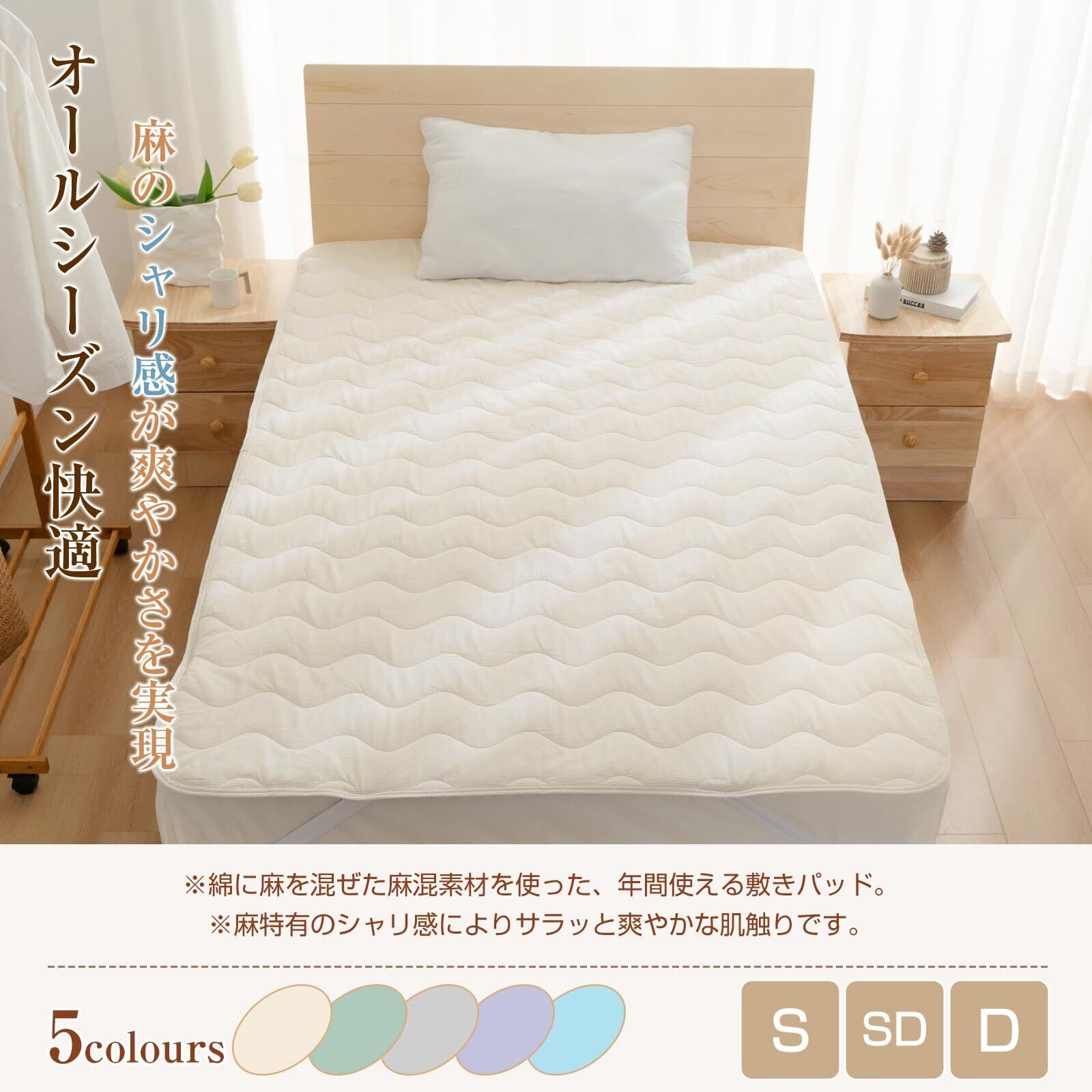 【特価セール】麻混 敷きパッド シングル 麻綿100%天然素材 綿麻敷パッド 帝人中綿 オールシーズンで使える しきぱっど べっどぱっど パッドシーツ兼用 洗える さらっと肌触り 爽やか ズレにくい 四隅ゴム付 抗菌防臭防ダニ 丸洗いOK SEK認証