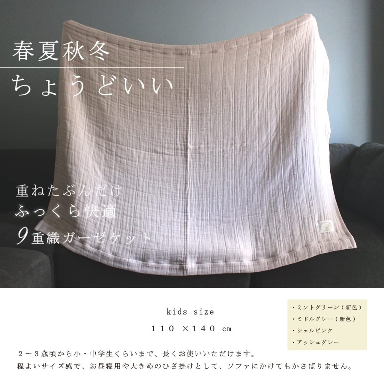 コットンフィーユ(cotton feuille)【9重織ガーゼケット】1年中快適に使えるふかふかボリュームガーゼ 日本製 織物の匠ならではの品質(キッズ/シェルピンク)
