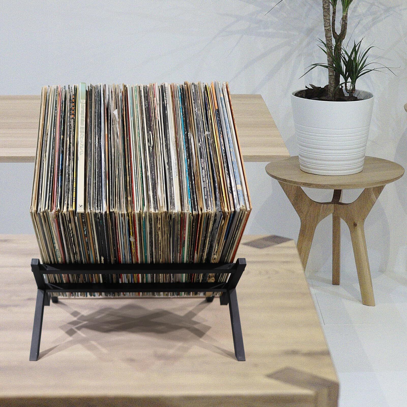 レコード収納ラック レコード棚 LPレコードラック ディスプレイ 絵本ラック マガジンラック アルバム 金属製 ブラック 菱形 60枚LP