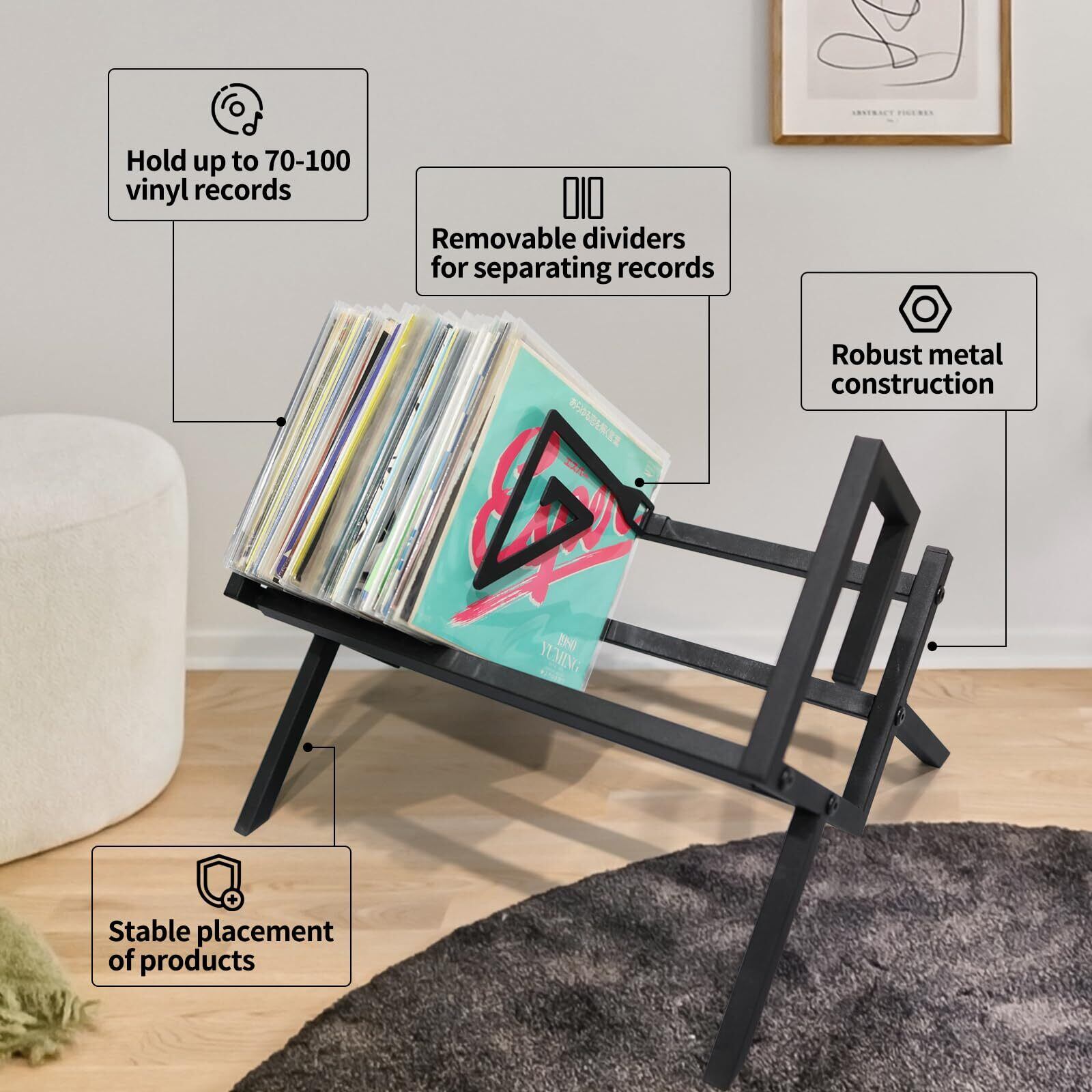 【数量限定】レコード収納ラック レコード棚 LPレコードラック ディスプレイ 絵本ラック マガジンラック アルバム 金属製 ブラック 菱形 60枚LP