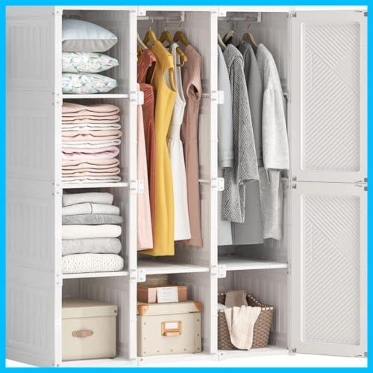 【幅広い用途】多機能ワードローブはスペースを最大限に活用し、衣類、枕、毛布、および他の小物を十分に収納できます。