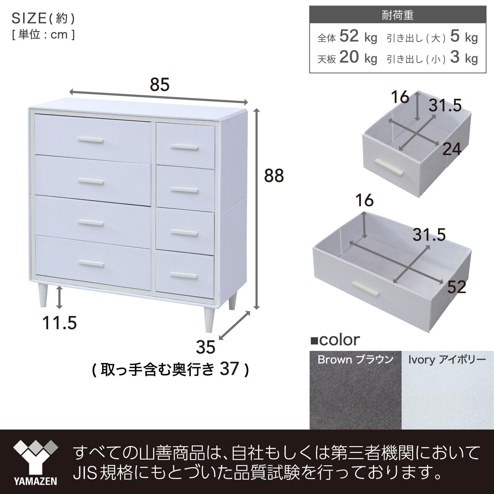 山善(YAMAZEN) チェスト 4段 ワイド 組立カンタン ファブリック 収納チェスト 引き出し タンス 布製 おしゃれ 衣類 収納 幅85×奥行35(取っ手含む奥行37)×高さ88cm 洋服収納 ラック ブラウン YZDFC-8590(BR)