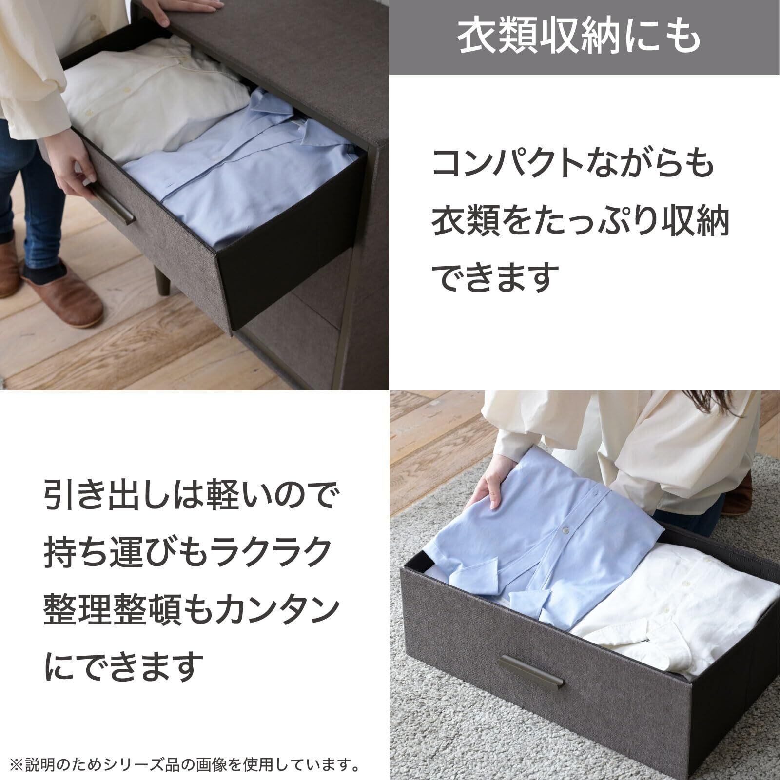 【スタイリッシュな布製チェスト】衣類収納やリビング収納にぴったりなファブリック製のチェストです。手ざわりの良いファブリック生地を採用しており、リビングや寝室、1人暮らしのお部屋など、どんなお部屋にもなじみます。引出し付きなので見た目もすっきりと収納できます。