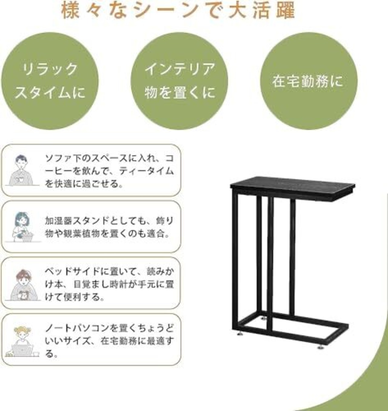 【多機能】コンパクトで移動が楽々、様々なシーンで大活躍。ソファサイドテーブル、ベッドサイドテーブル、加湿器スタンド、コーヒーテーブル、インテリア物の置台、在宅勤務テーブルとして楽に使えます。