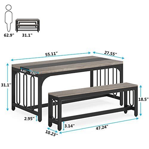 Tribesigns ダイニングテーブルセット 4人用 3点セット 食卓 テーブル 四人用 ベンチ付き おしゃれ 幅140 北欧 リビングテーブル セット