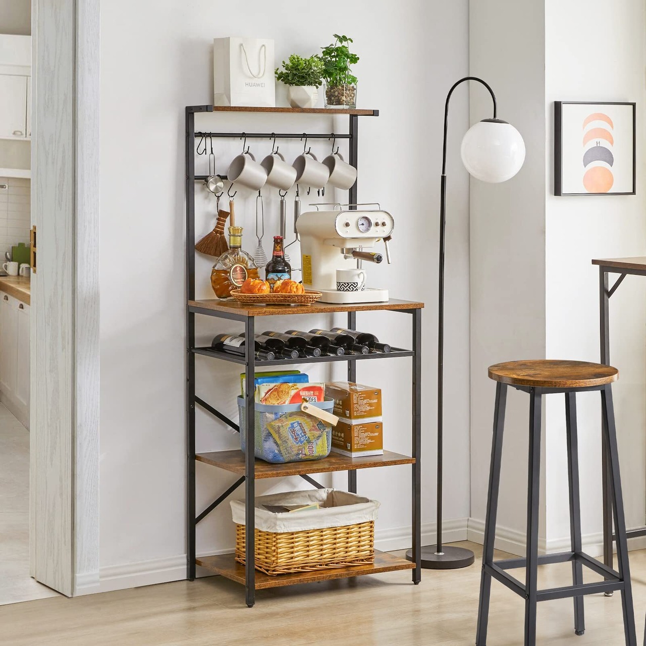 YMYNY レンジ台レンジボード 5層 キッチンワゴン 大型レンジ対応 工業用コーヒー バー ステーション 調節可能なワイン ホルダーと12個S字ラックを付き 幅59×奥行40×高さ143cm 茶色 JPHBR001H