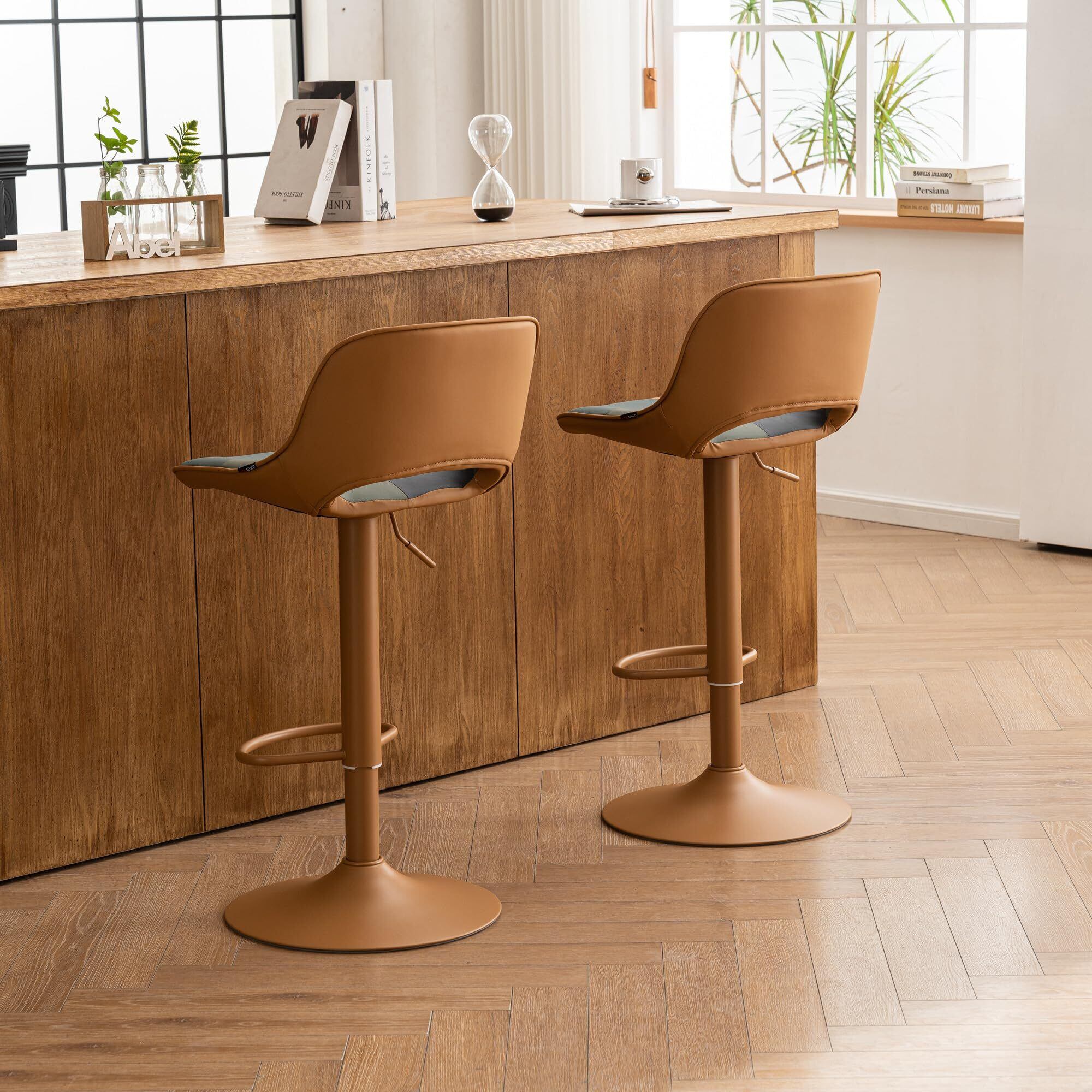 Baolande カウンターチェア 2脚セット バースツール2脚セット ブラック モダン 回転バースツール PUフェイクレザー張り カウンターの高さ調節可能 バーチェア 中空の背もたれ付き キッチンアイランド用 キャメルグリーン-キャメルレッグ