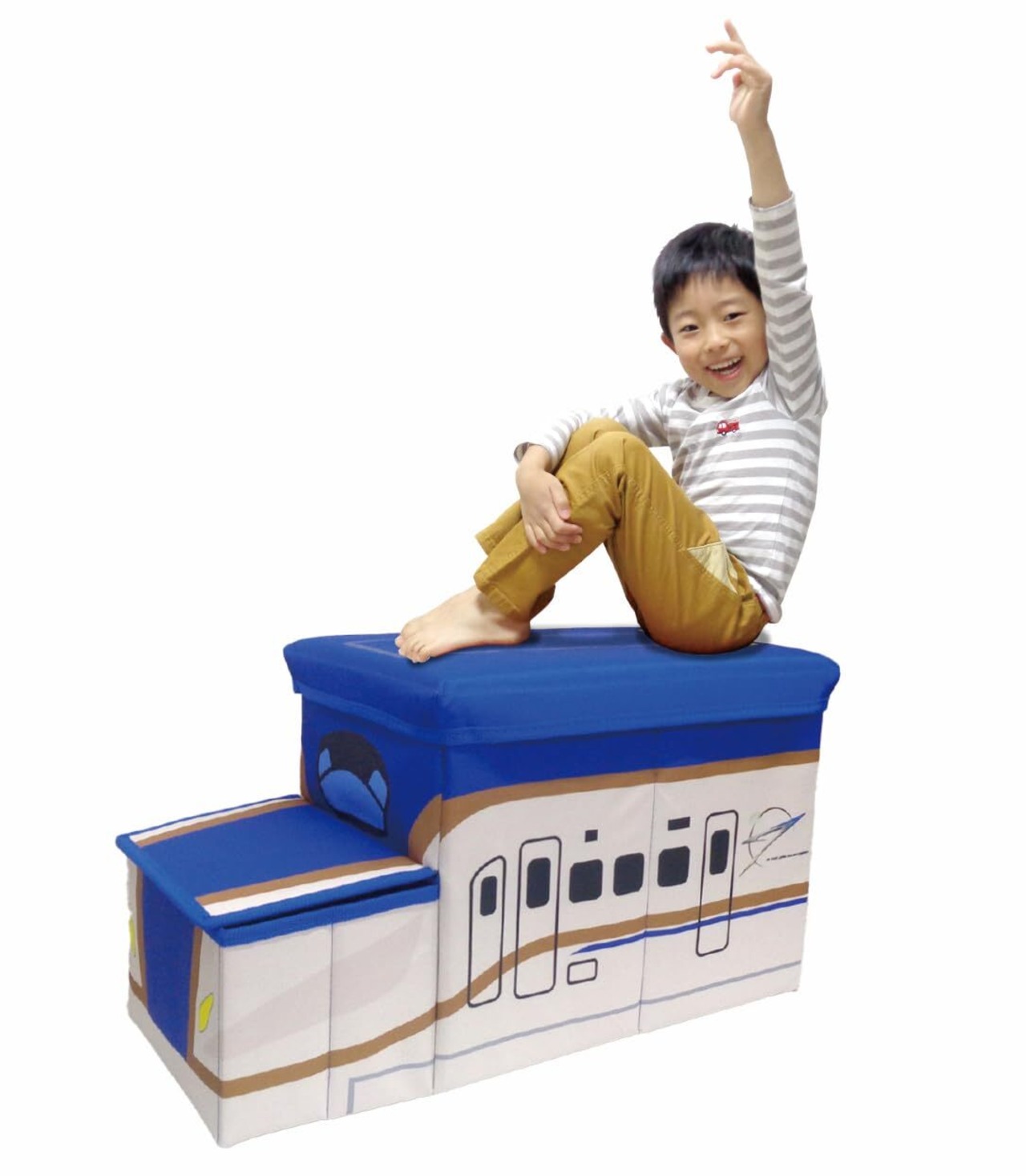 JR貨物 新幹線 鉄道 コンテナ型 座れる 収納ボックス お片付け ボックスチェア おもちゃ箱 蓋付き (E7系かがやき)