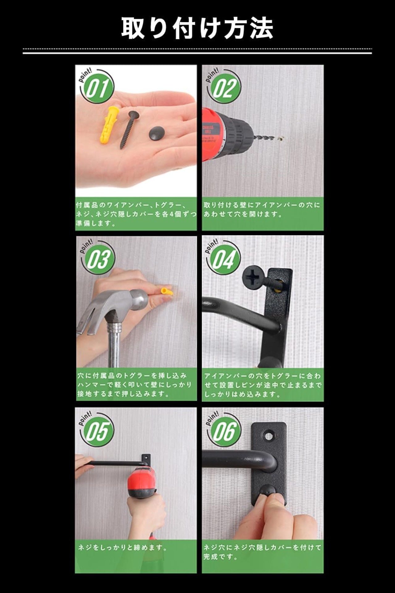 改善情報 ①ビズが折れる問題について、全数回収しビスを改善済みです。 ②アイアンバーと同色のビスにしているため、ビスキャップなしでも使えます。