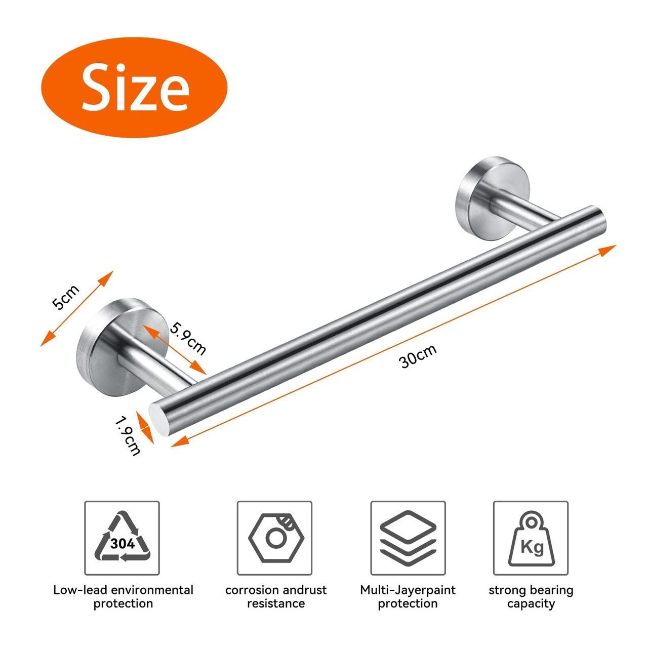 YUET タオルレール 30cm つや消し仕上げ ハンドタオルホルダー バー バスルームホルダー バスルーム キッチン 布巾ハンガー 304 ステンレススチール 防錆 壁掛け 12インチ