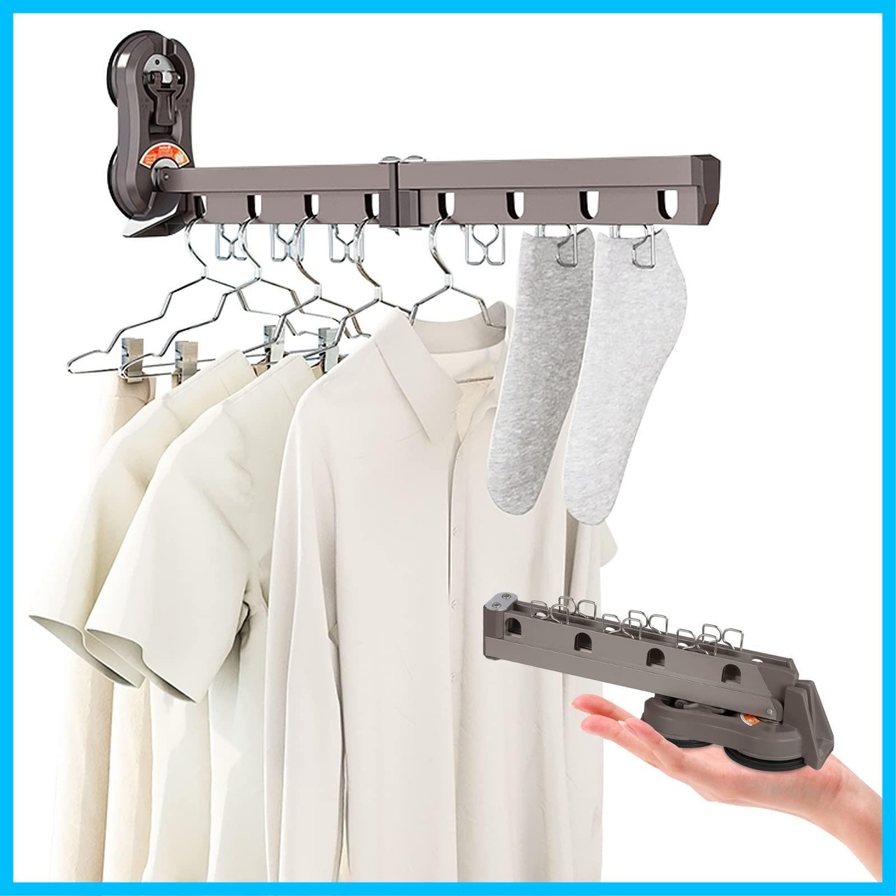 【在庫処分】【超便利・室内物干し】吸盤式ウォールハンガー 洗濯物干し 室内 折りたたみ式 旅行用ハンガー 梅雨対策 服掛けラック 8連 壁を傷つけにくい 省スペース 工事不要 雨の日室内干し 部屋干し 高耐荷重 持ち運びが簡単 旅行や出張に最適 (ブラウン)