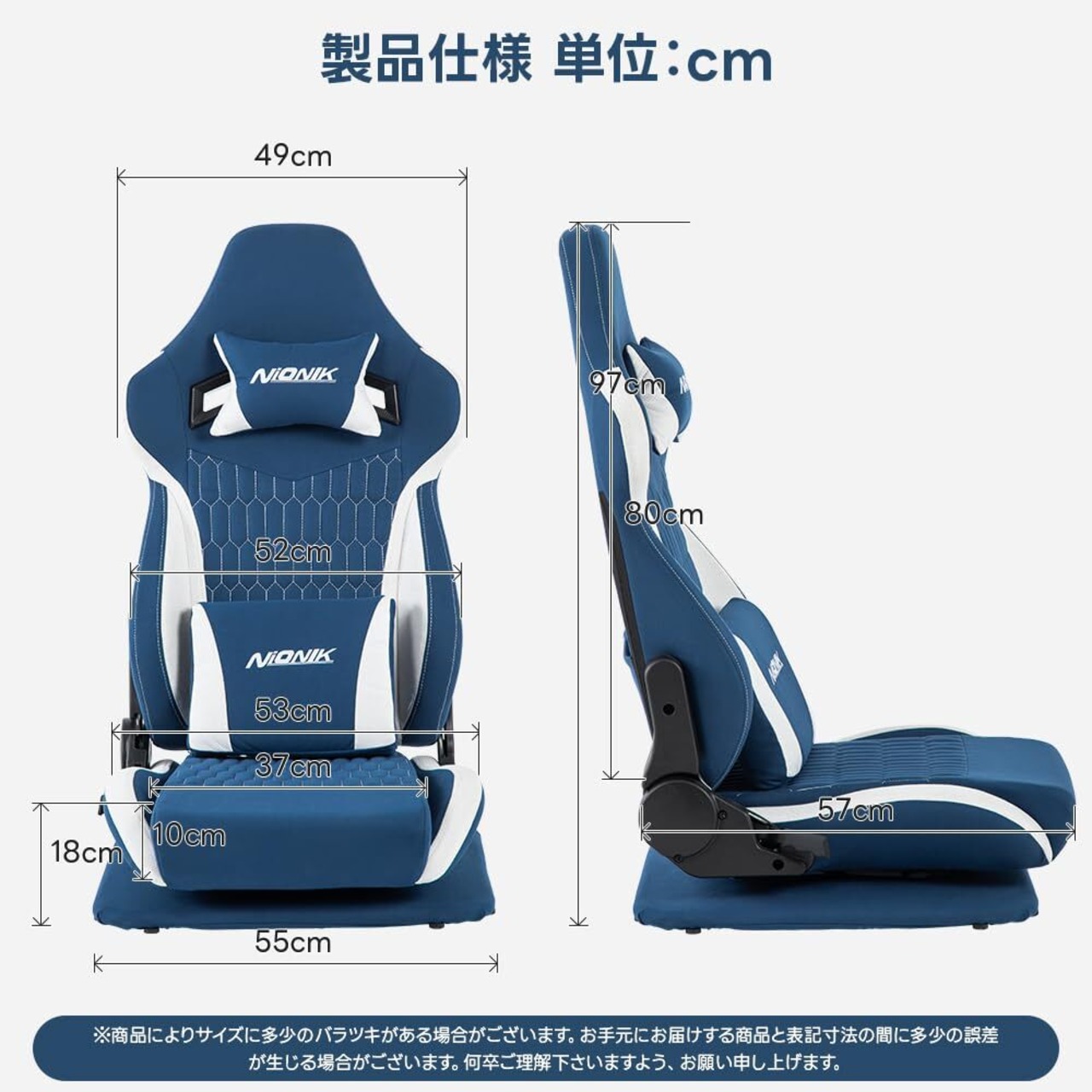 【ゲーミング座椅子 仕様】サイズ:L54cm*W67cm*H90cm;座面高さ:10cm;本体重量:約13.8;耐荷重:約136kg;素材:ファプリック+ウレタンフォーム;機能:90°-180°リクライニング、360°回転、肘掛けなし
