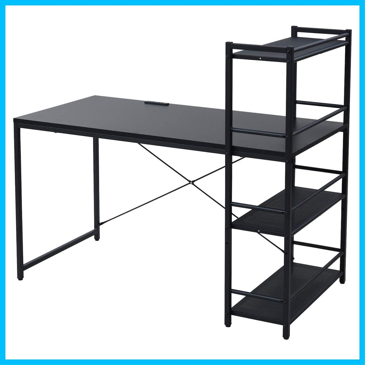 【数量限定】山善(YAMAZEN) デスク 幅120×奥行64.5×高さ108.5cm コンセント(2口) ラック付き(左右入れ替え可能・A4対応) 頑丈 組立品 ブラック MRPE-1260(BK/SBK) 在宅勤務