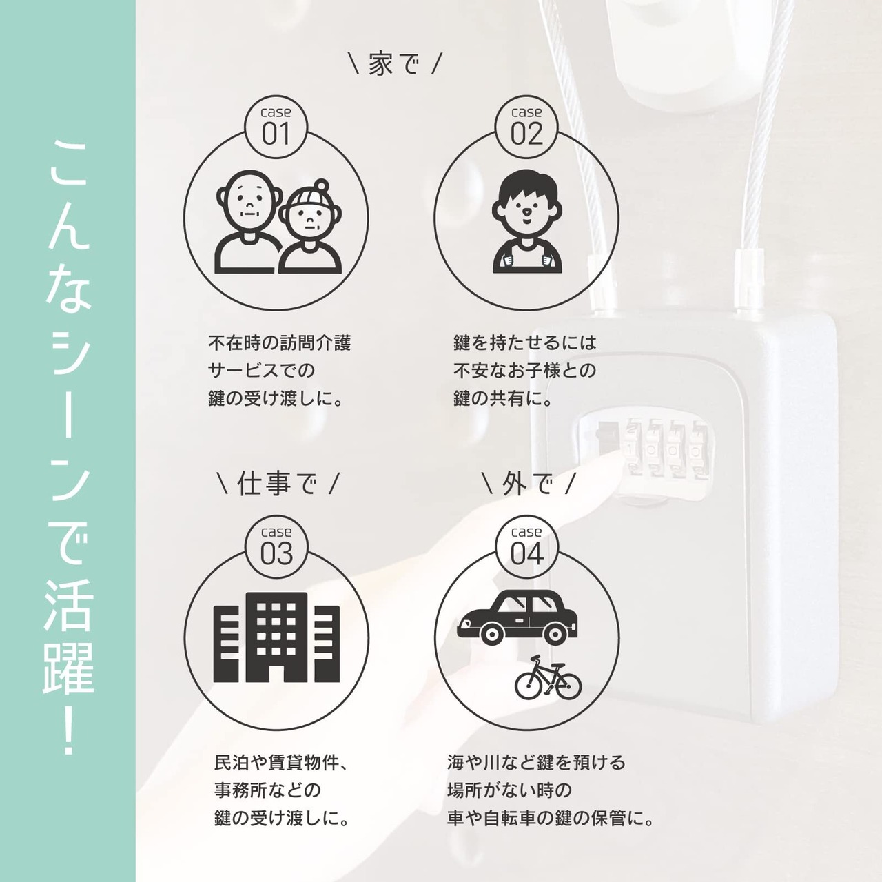■こんな場面で:家族間の鍵の共有に、施設の鍵の管理に、老人介護(デイサービス)の送り迎えに、賃貸物件や民泊の管理に、工事現場で