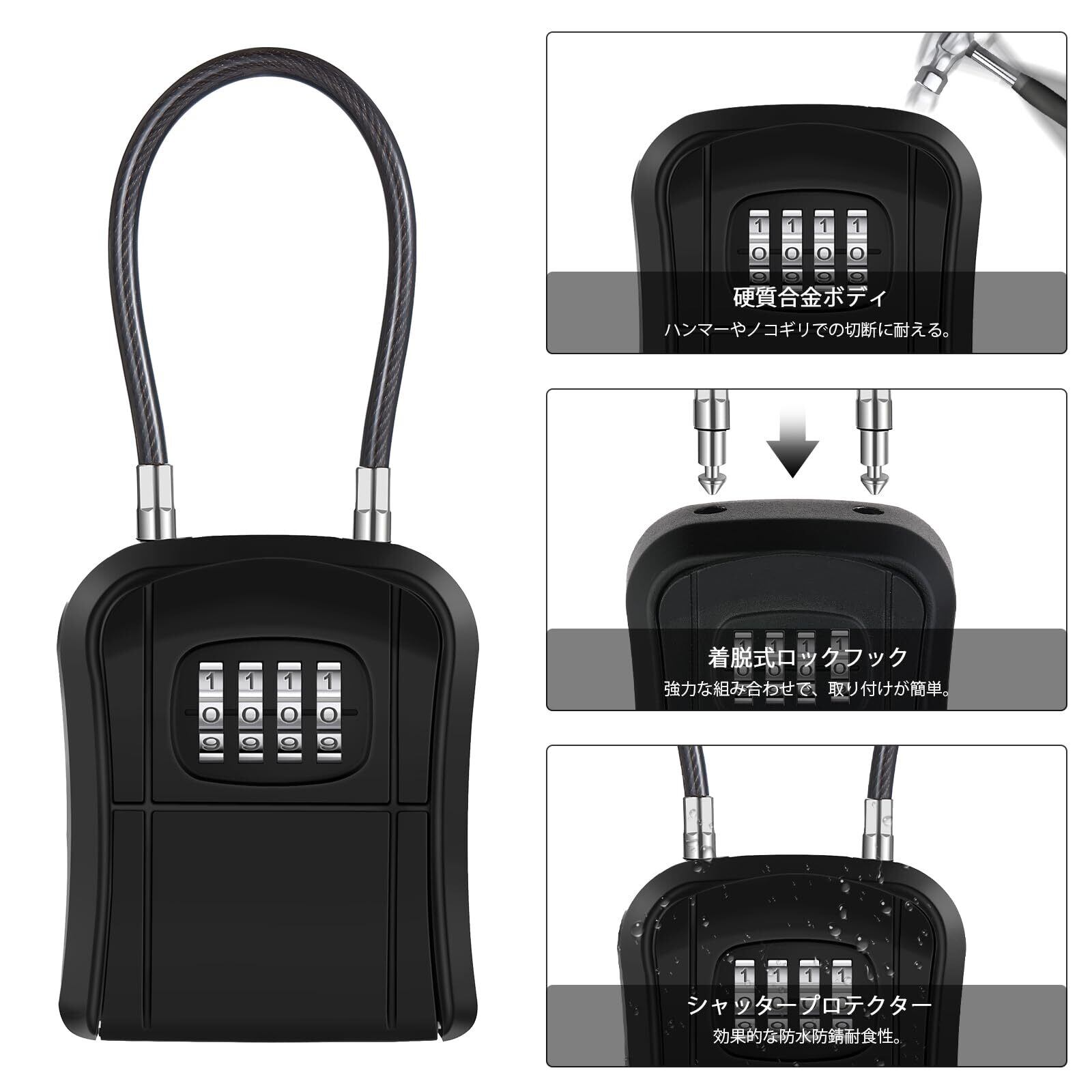 【数量限定】キーボックス ダイヤル式 セキュリティボックス 壁掛け 鍵付き 収納ボックス 4桁 暗証番号 防犯 盗難防止 屋外 防水 小型 南京錠 倉庫 玄関 別荘 家庭 アパート用 (ブラック)lock box