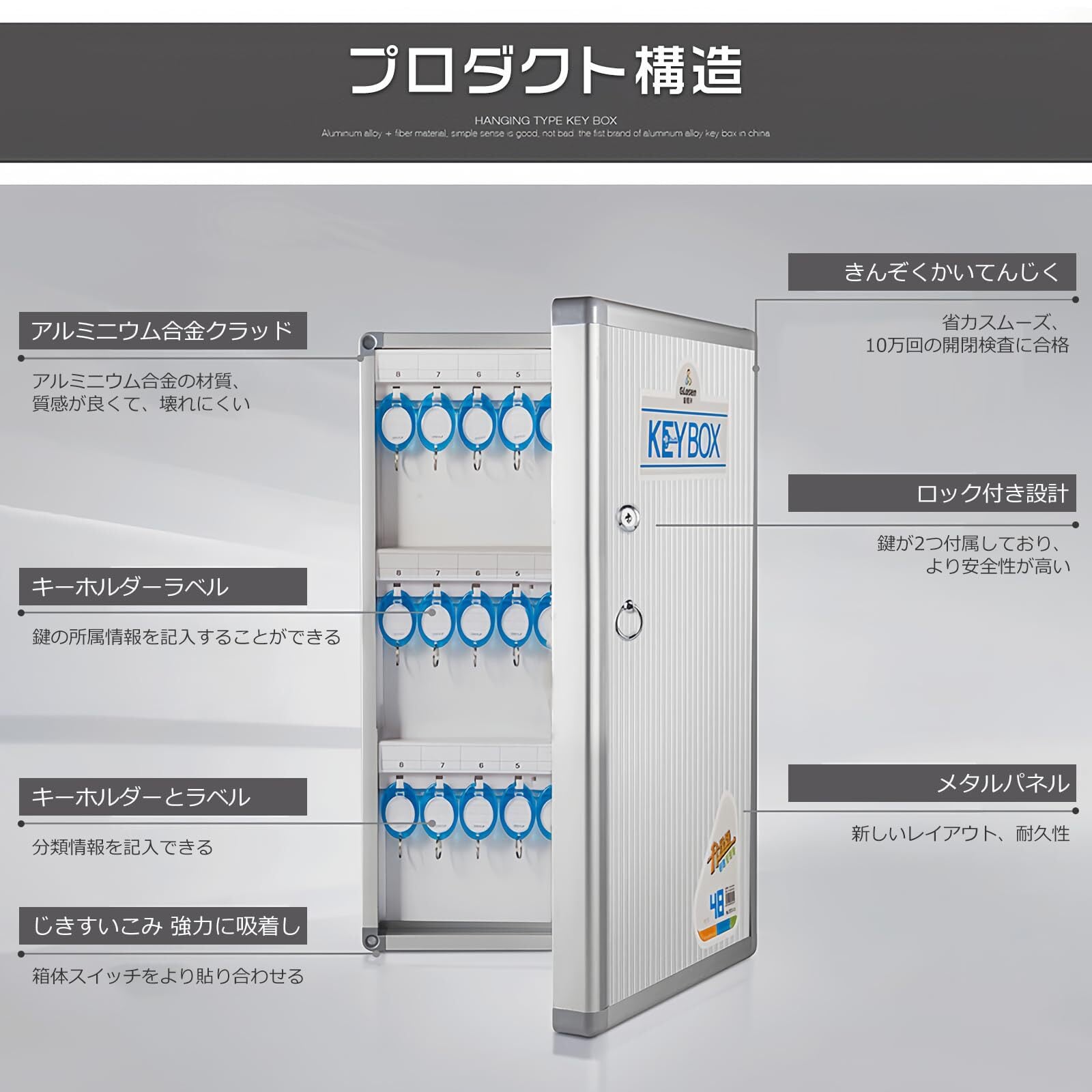 【数量限定】キーボックス 壁掛式 おしゃれ 48鍵 大容量 鍵収納 キーボックス 金属製 鍵管理 ロック付き コンパクト オフィス 寮 不動産企業適用 手提金庫 キーボック コンパクト 省スペース 防犯 48キー(26.4*6*43.5)