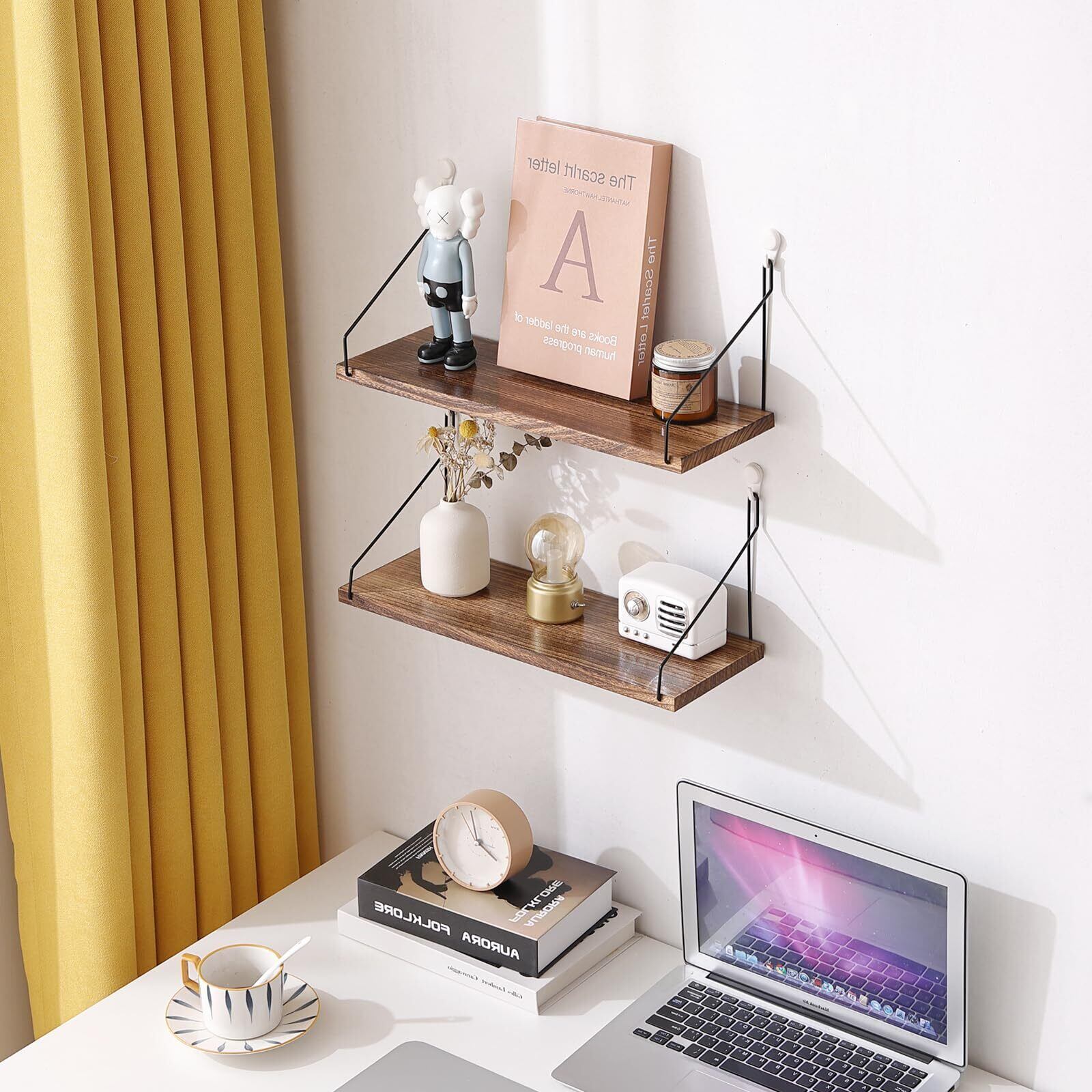 ウォールシェルフ 壁を傷つけない 42+42cm2点セット 天然桐木壁掛け棚 賃貸 壁 棚 穴あけない ウォールラック 壁に付けられる家具 飾り棚木製 簡単取り付け 洗面所/キッチン/トイレ/玄関 壁棚収納 (ダークブラウン)