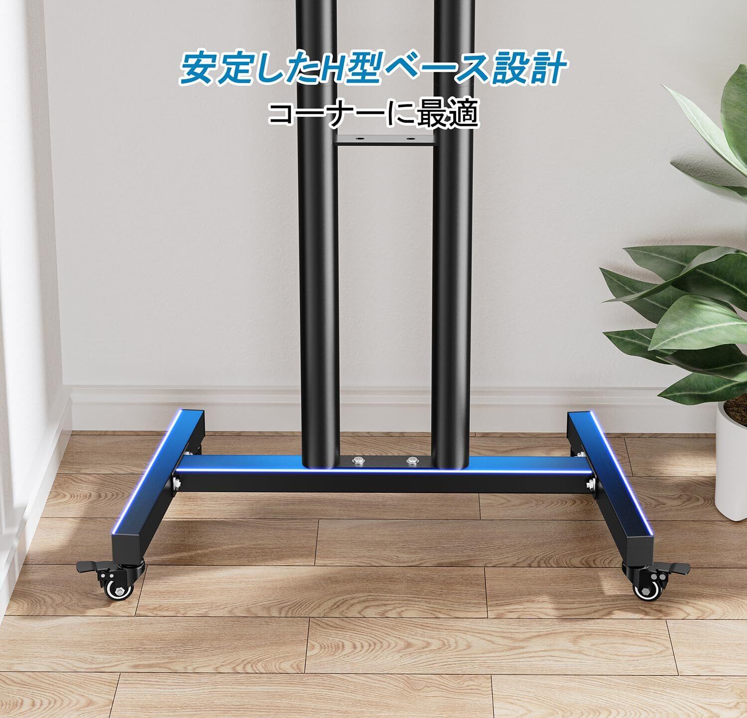 【優れた堅牢性】ハイタイプテレビスタンドは、優れた安定性と堅牢性をする二重柱設計を採用しており、より大きな支えを提供します。使用中に揺れたり不安定になったりすることは全くありません。[工]字型の支柱脚により、安全性が高いだけでなく、壁に近づけてスペースを節約できます。