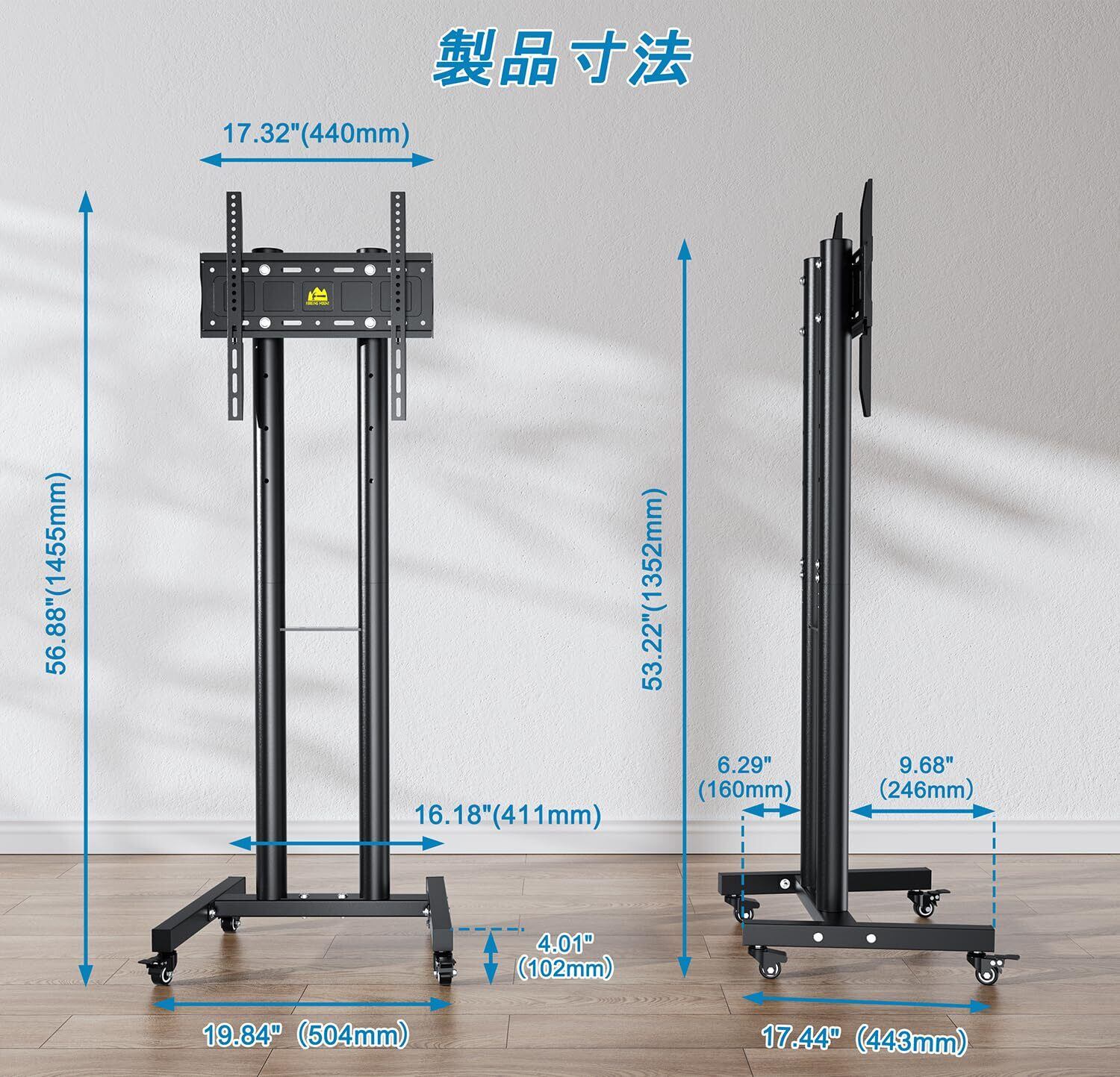 FORGING MOUNT テレビスタンド 移動式 壁寄せテレビスタンド 23-60インチ液晶テレビに対応 二重支柱設計 ハイタイプ キャスター付き 高さ調整可能 耐荷重40kg VESA最大400mmx400mm