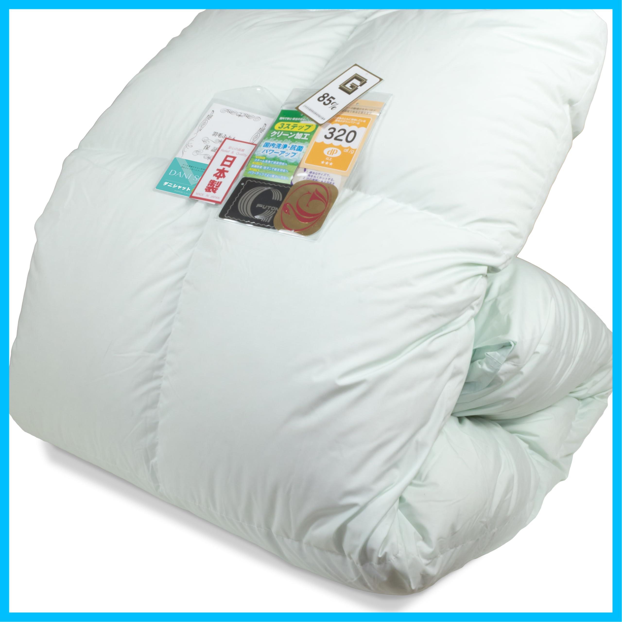 【特価商品】安眠工場 羽毛布団 セミダブル【羽毛量1.4kg】 日羽協ニューゴールドラベル認定品質 ホワイトダウン85% 320dp(かさ高性135mm)以上 日本製 長期 軽量生地 防ダニ加工 国内洗浄・抗菌防臭・パワーアップ加工 グリーン 非圧縮梱包 日本製