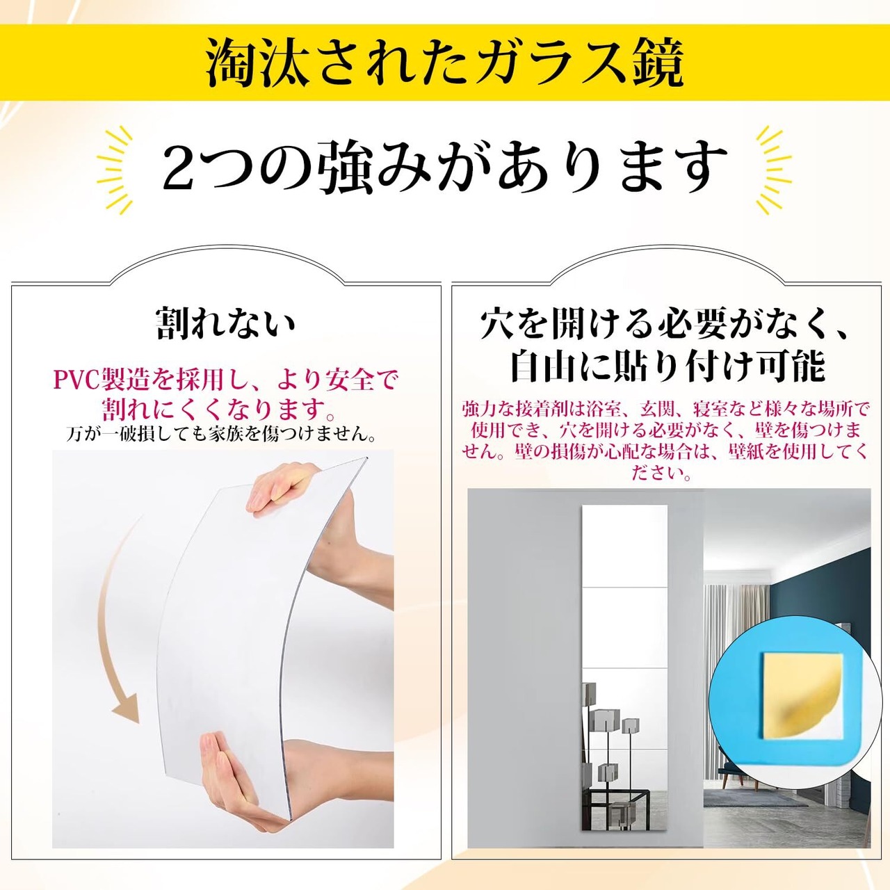 【製品詳細】セットごとに5枚の30cm×30cm×2mmの鏡を含み、専門の粘着ステッカーを付属し、確実に固着し飞散を防止しますシンプルなフレームレスデザインで、スペースをより広々と感じさせますPOZEALを選んで、壁の一面をあなたのファッションショーに変えましょう