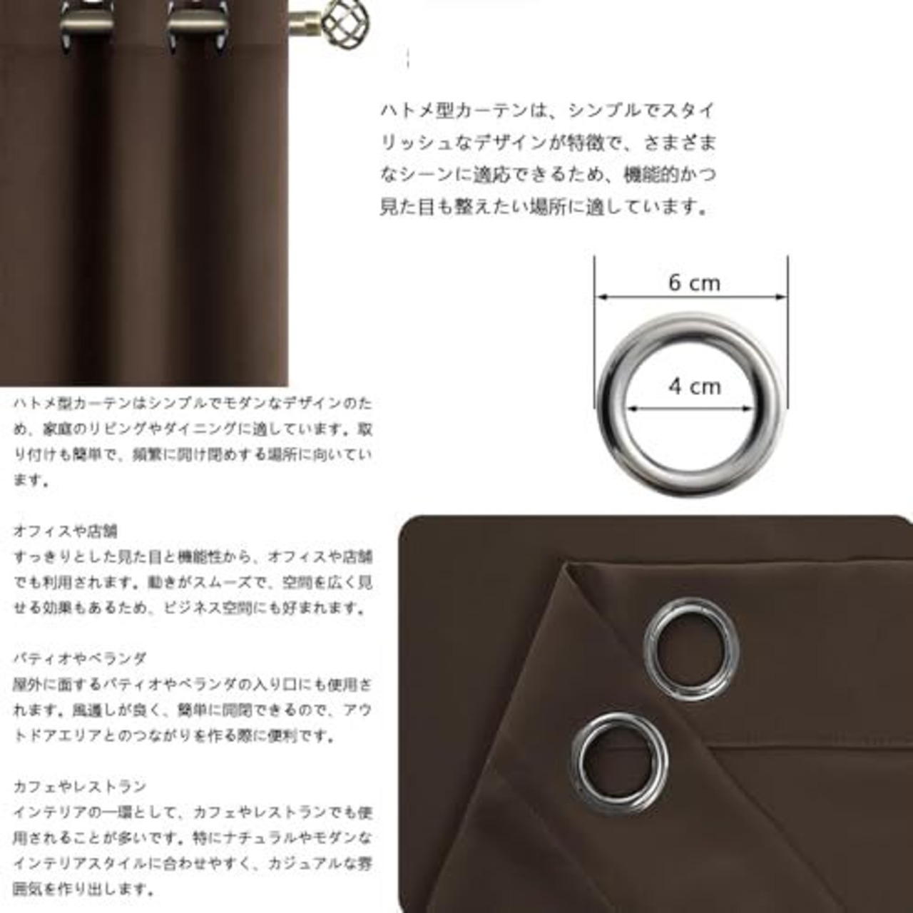 サイズ:幅100cm 丈130cm 素材:ポリエステル100% ハトメ部:ジュラルミン 内径約4cm ハトメ穴:6個/1枚