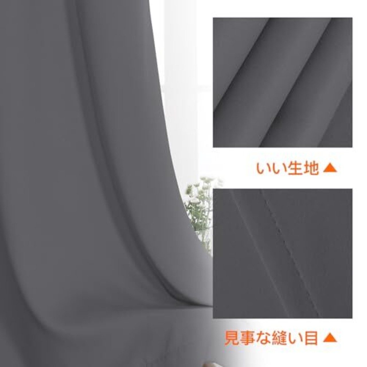 1級遮光カーテン 黒い遮光糸を三重織り込むため、日差しや紫外線などをしっかり遮られる機能付きの厚地カーテンです。(遮光性は暗いの方うが顕著です。)