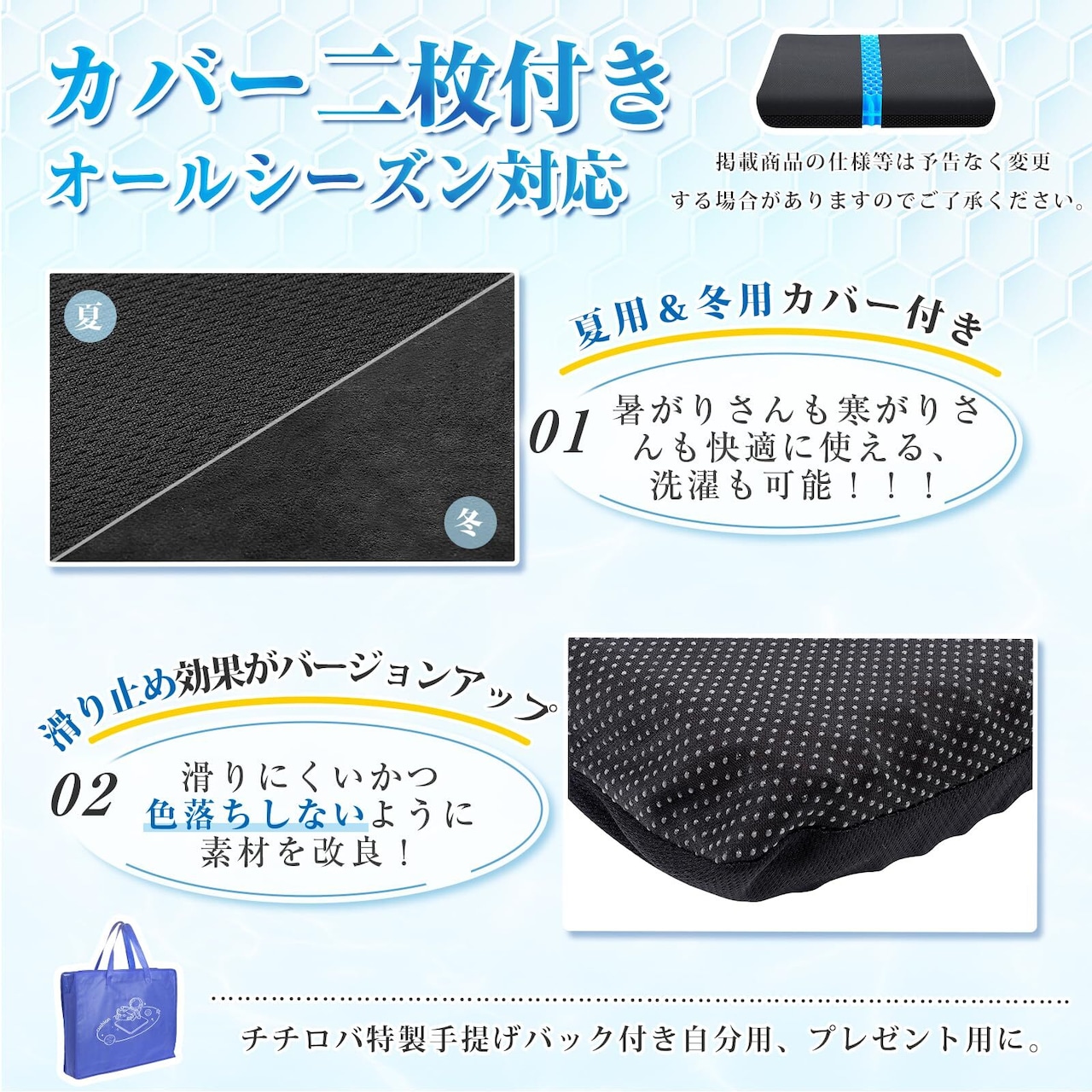 【新着商品】【 限定】 チチロバ(TITIROBA) ゲルクッション 極厚【冬用カバー付き】42×37×6cm 無重力 クッション 座布団 ハニカム構造 蒸れない 敬老の日 在宅勤務 オフィス 車 椅子 自宅用 洗える カバー 熱可塑性エラストマー ZD-03-T ブルー