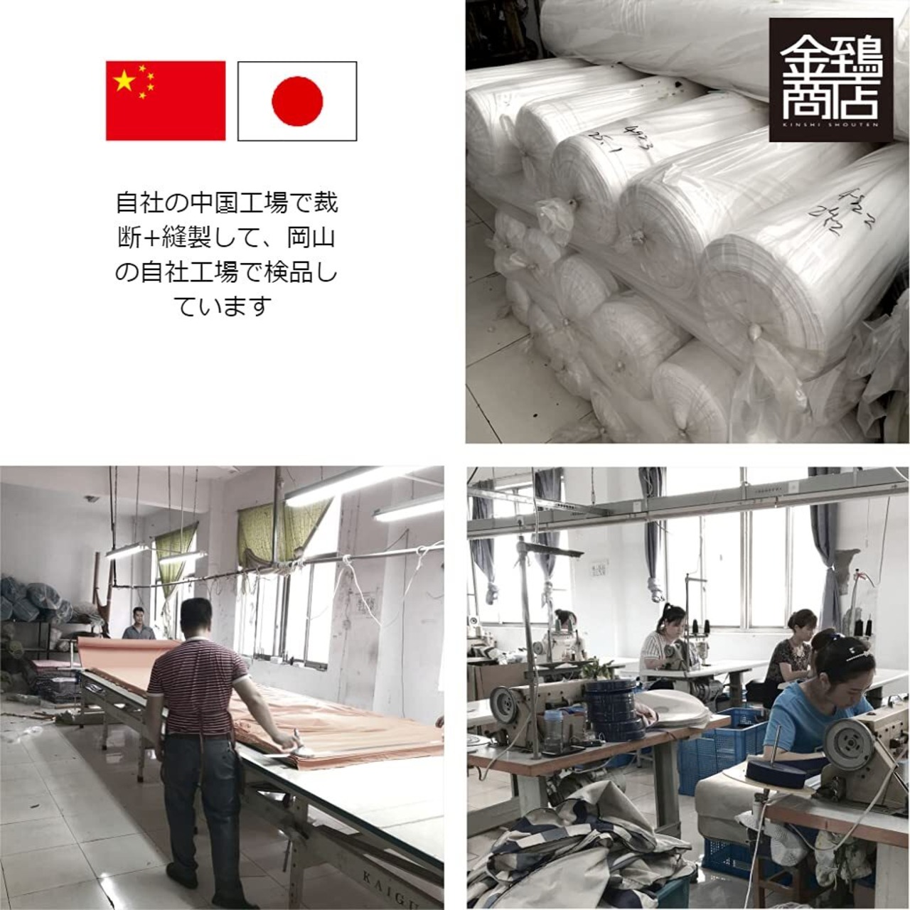 側地 ポリエステル80%綿20% 中国製 生地は、カバーをかけた後に中身がズレにくいT/C素材を使用しています。 自社の中国工場で縫製しています。